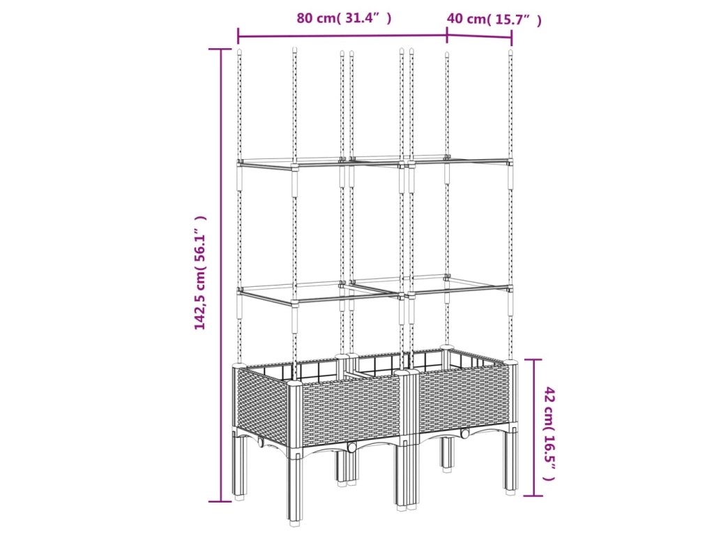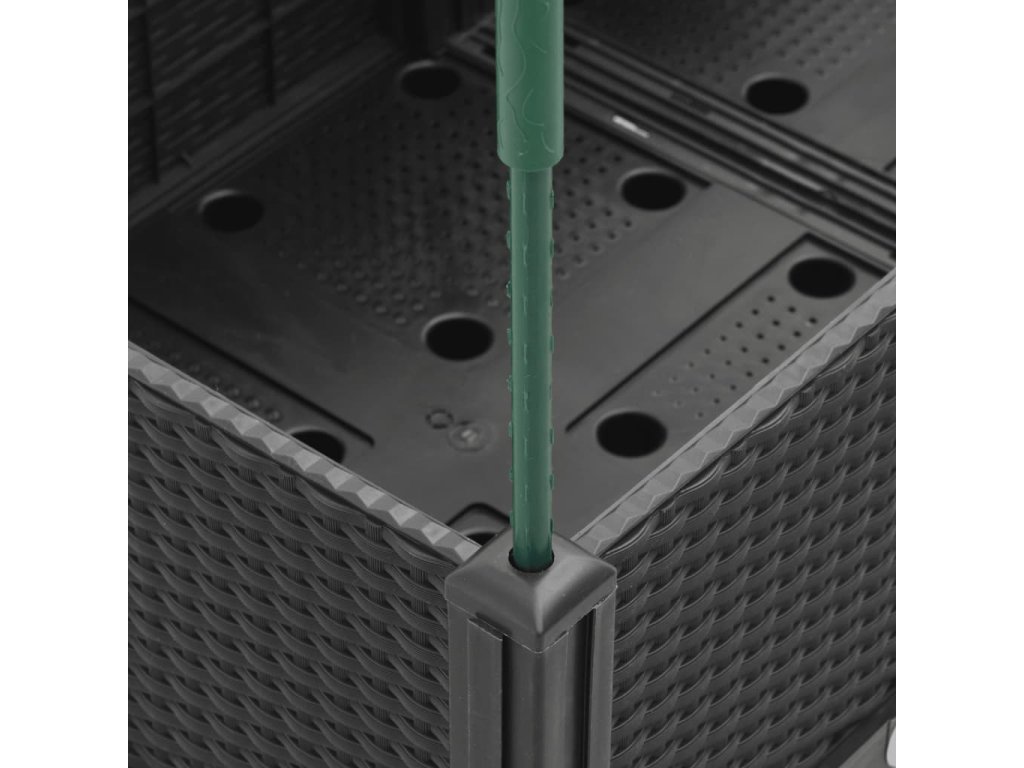 - Praktický design: Ideální dno pomáhá zadržovat vlhkost a umožňuje snadný odvod vody. Vestavěná treláž navíc nabízí oporu pro růst popínavých rostlin, jako jsou rajčata, hrášek nebo růže.