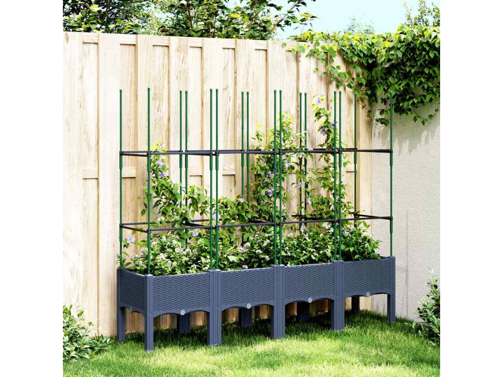 - Praktický design: Ideální dno pomáhá zadržovat vlhkost a umožňuje snadný odvod vody. Vestavěná treláž navíc nabízí oporu pro růst popínavých rostlin, jako jsou rajčata, hrášek nebo růže.