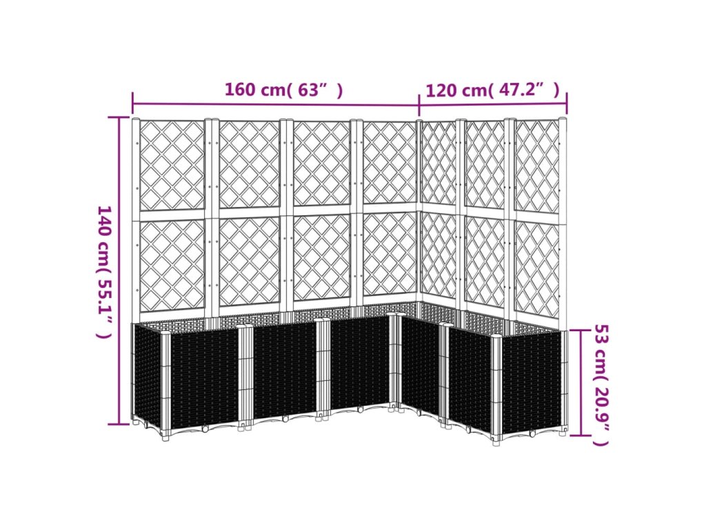 - Praktický design: Ideální dno pomáhá zadržovat vlhkost a umožňuje snadný odvod vody. Vestavěná treláž navíc nabízí oporu pro růst popínavých rostlin, jako jsou rajčata, hrášek nebo růže.