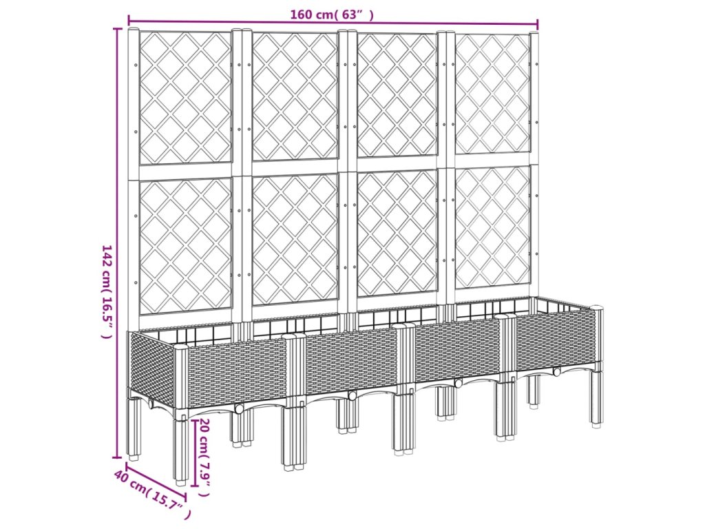 Zahradní truhlík s treláží světle šedý 160 x 40 x 142 cm PP 367932