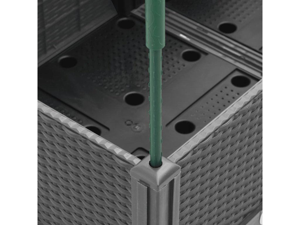 - Praktický design: Ideální dno pomáhá zadržovat vlhkost a umožňuje snadný odvod vody. Vestavěná treláž navíc nabízí oporu pro růst popínavých rostlin, jako jsou rajčata, hrášek nebo růže.