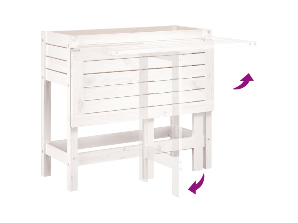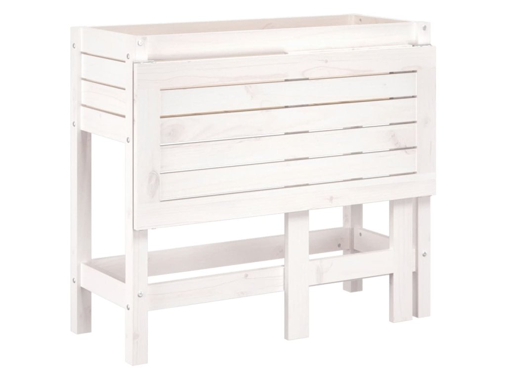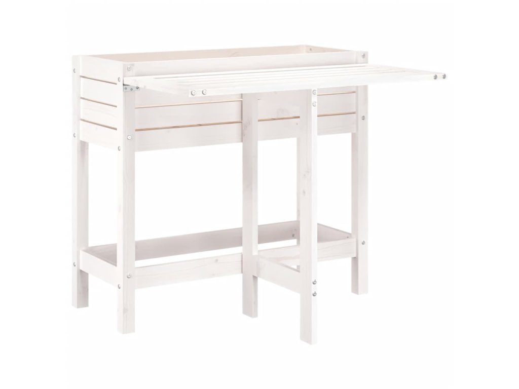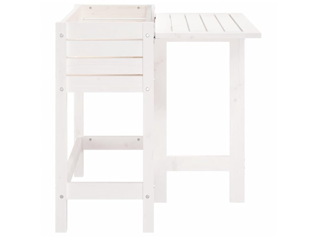 Zahradní truhlík se skládacím stolkem bílý masivní borové dřevo 825122