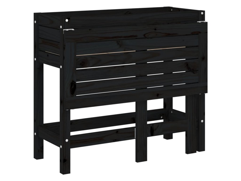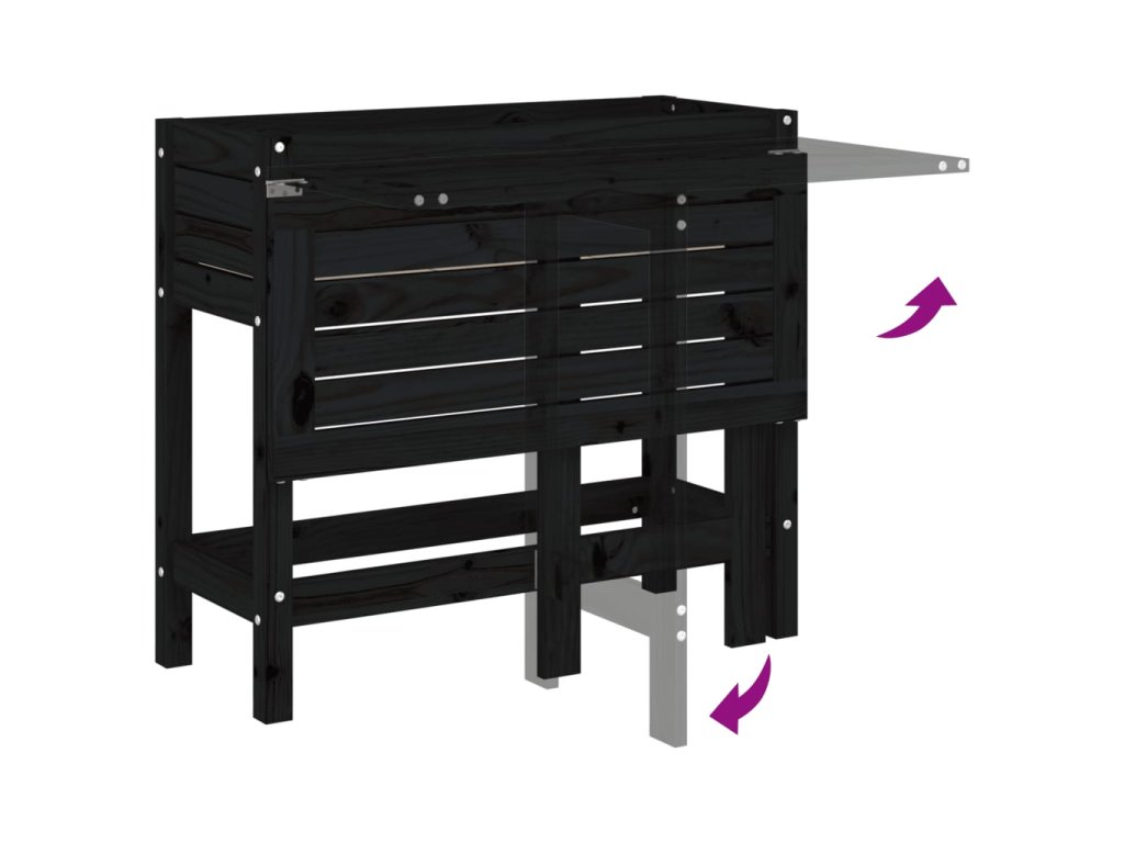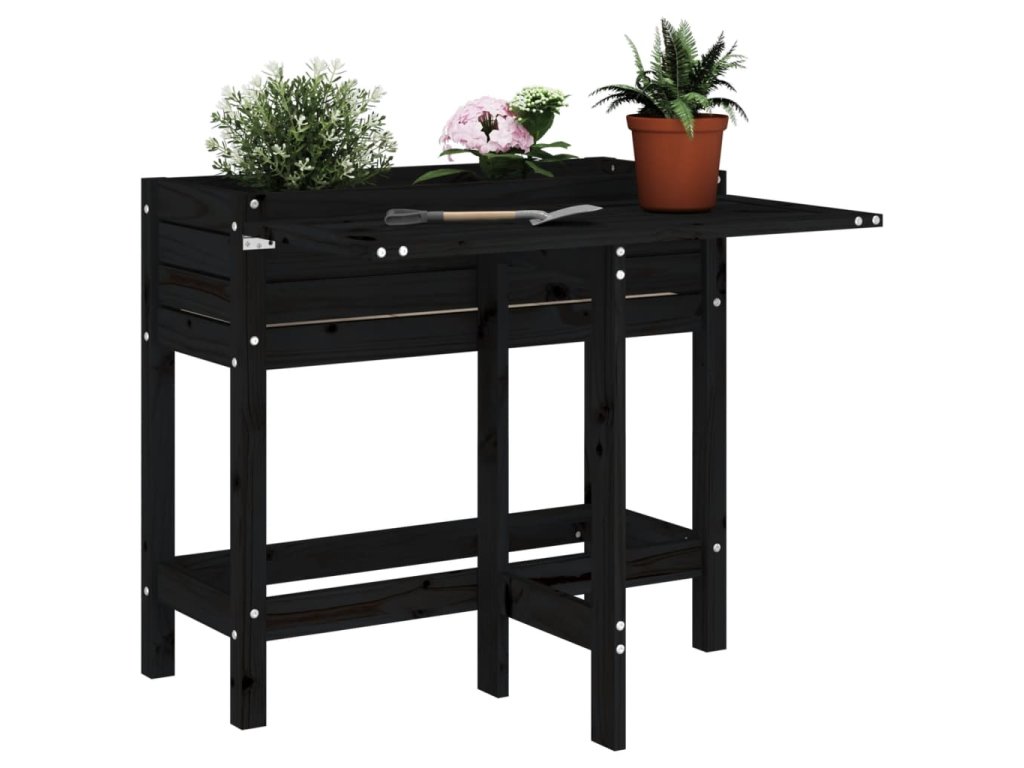 Zahradní truhlík se skládacím stolkem černý masivní borovice 825125