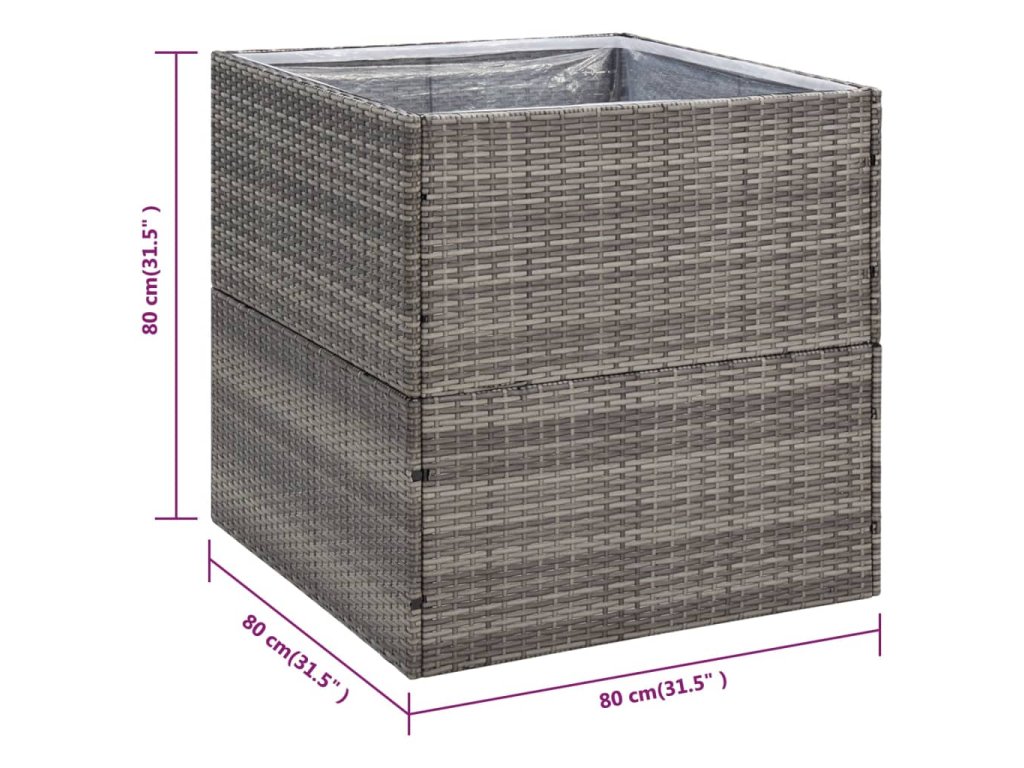 Zahradní truhlík šedý 80 x 80 x 80 cm polyratan 319177
