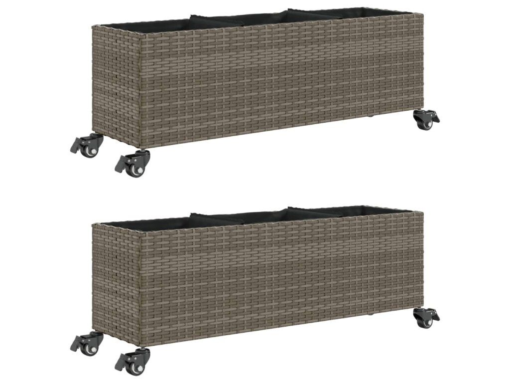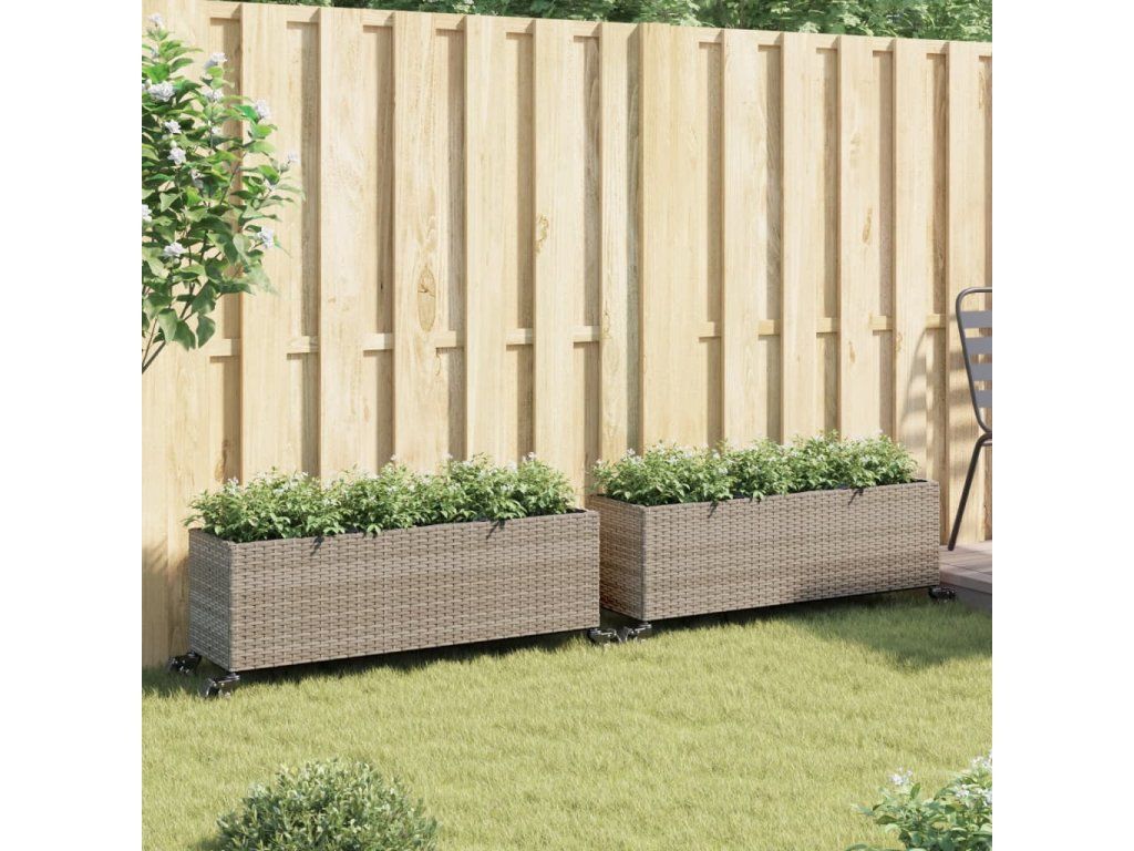 Zahradní truhlíky s kolečky 2 ks šedé 107x32x38 cm polyratan 3210527