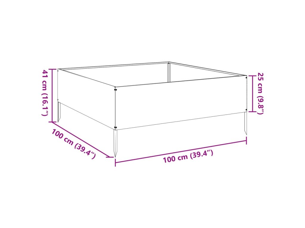 - Robustní a odolný materiál: Vyvýšený záhon je vyroben z oceli, skvěle proto odolává povětrnostním vlivům a je vhodný pro dlouhodobé používání venku.