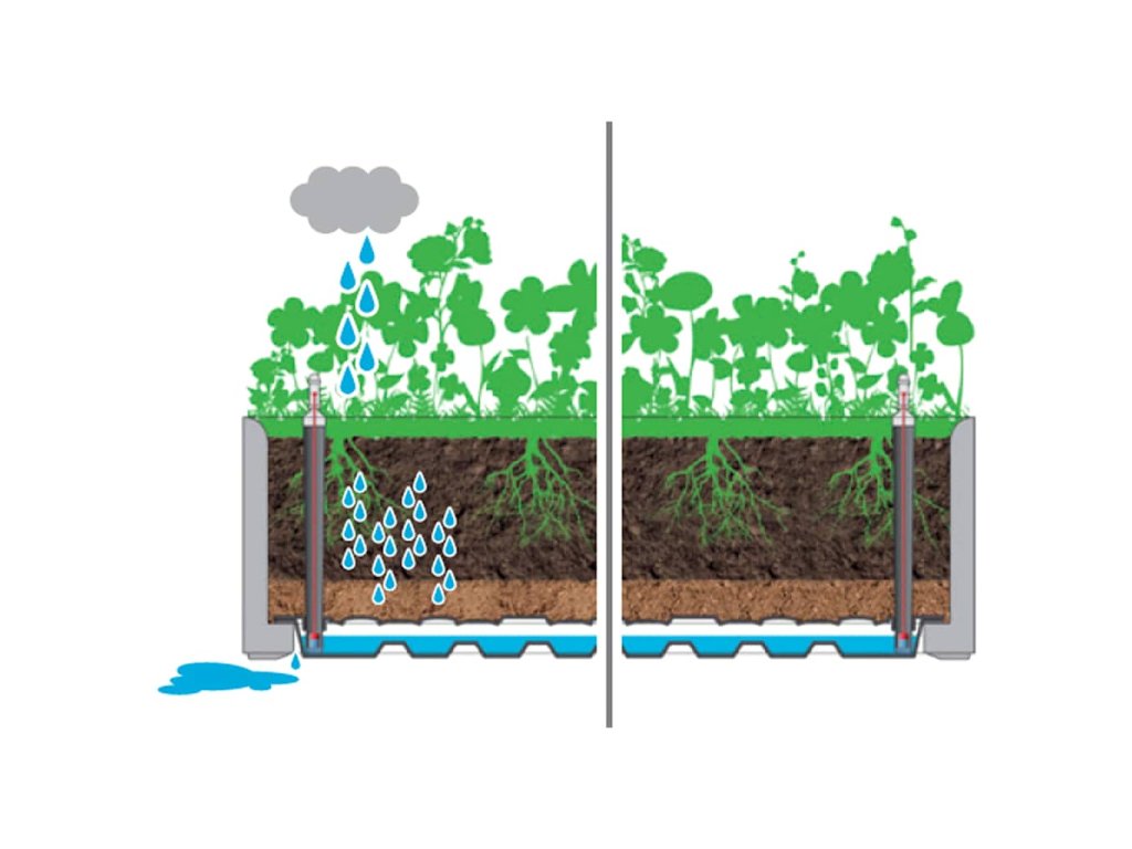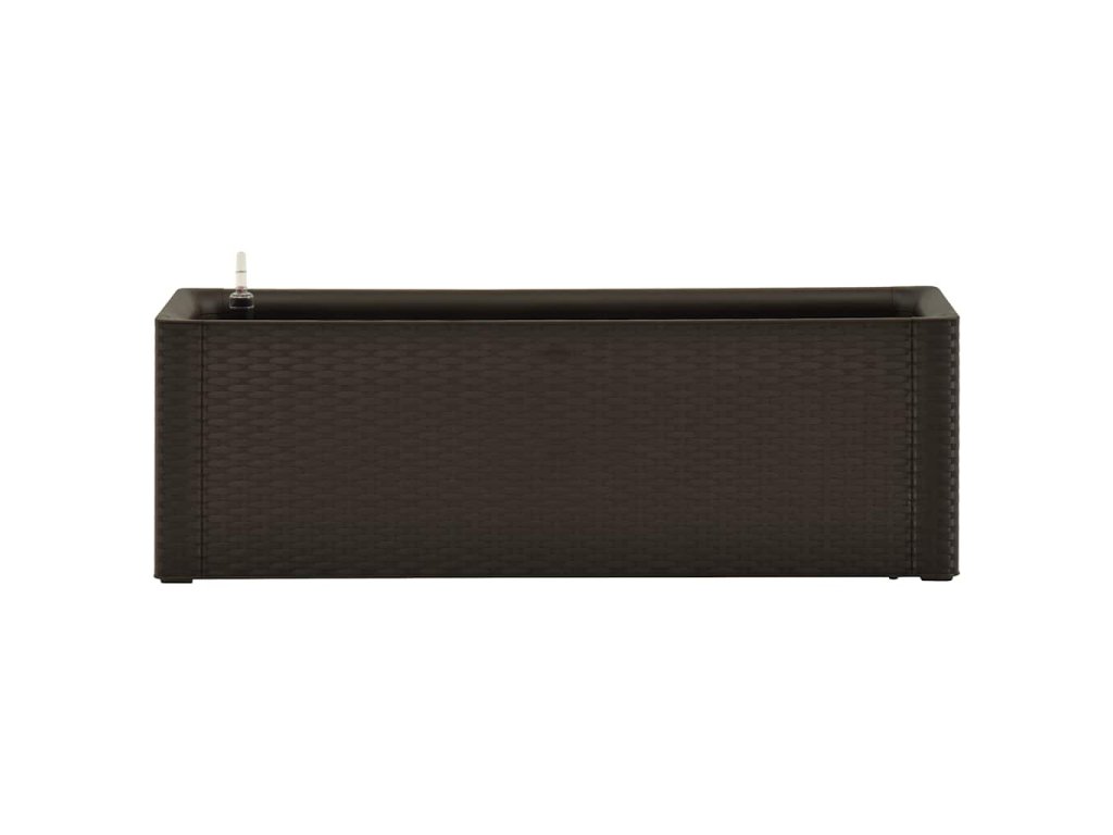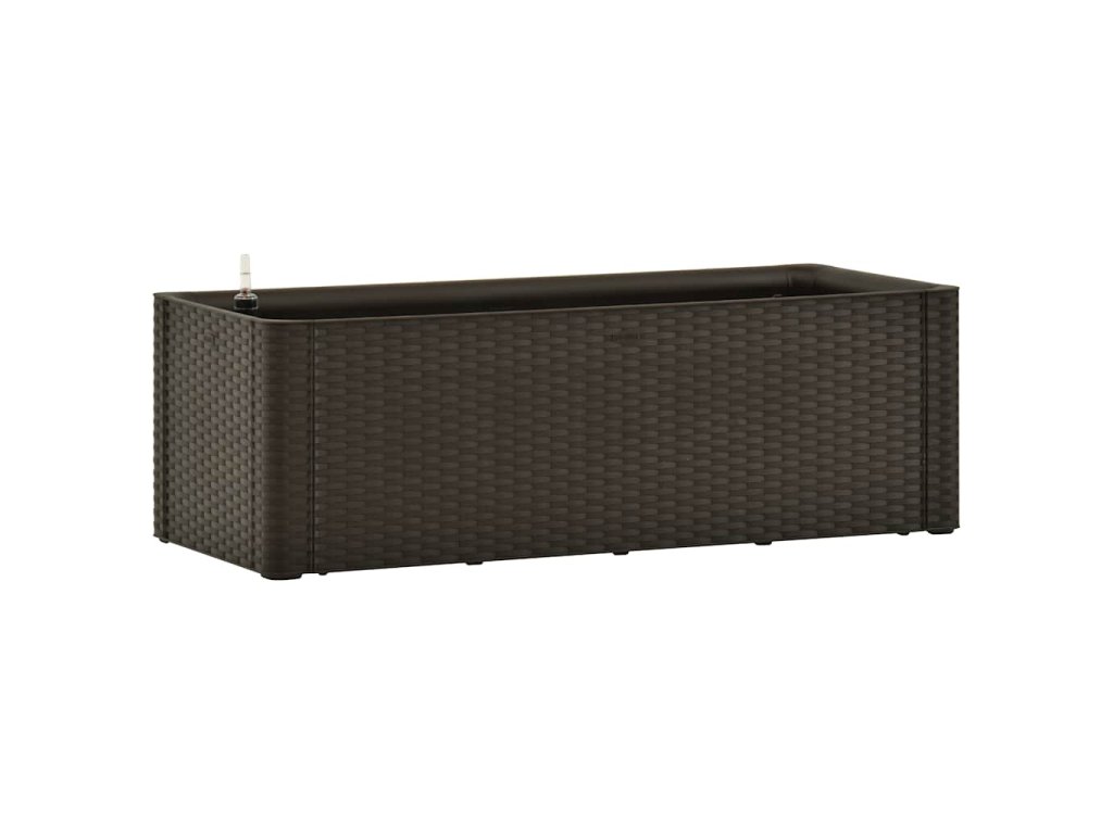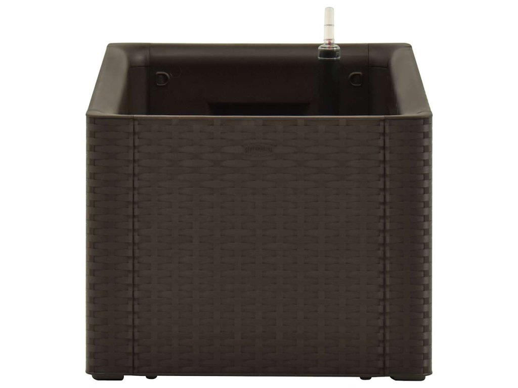 Tento zahradní truhlík je vyrobený z robustního polypropylenu (PP), který je odolný vůči povětrnostním podmínkám, mrazu a UV záření a je vhodný pro vnitřní i venkovní použití. Design připomíná strukturu pravého ratanu. Do tohoto truhlíku se vejde velké množství zelených rostlin a květin. Truhlík je navíc vybavený samozavlažovacím systémem a indikátorem hladiny, který zabraňuje nadměrnému zalévání.