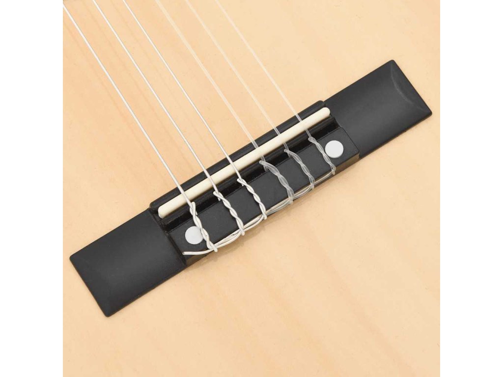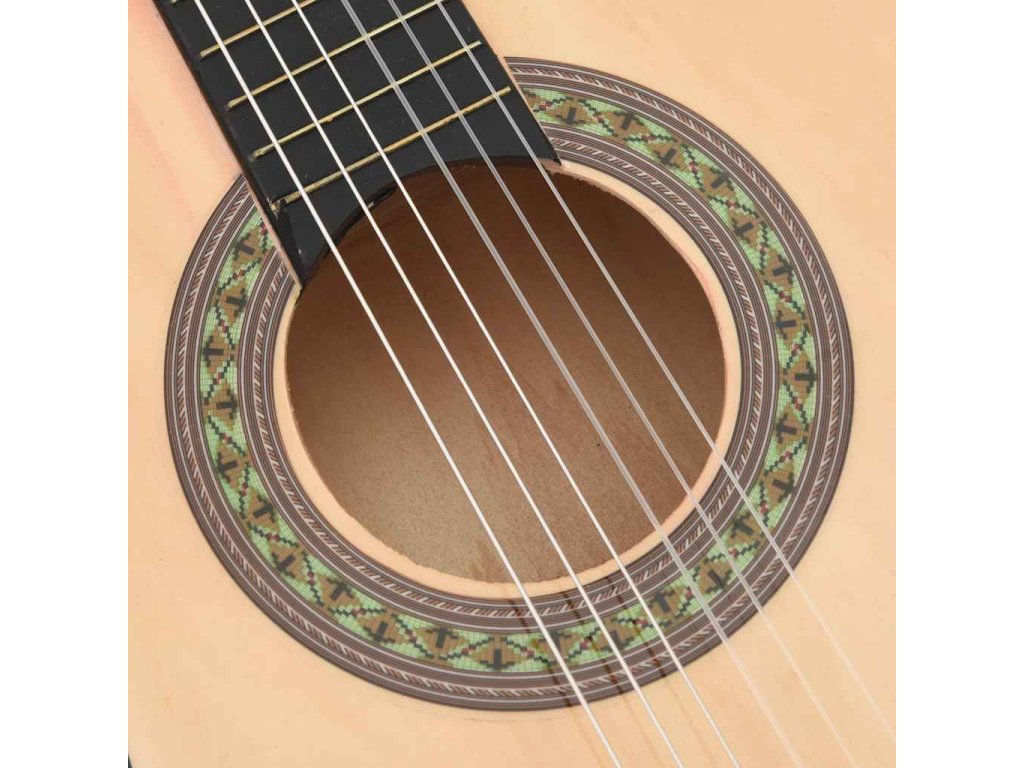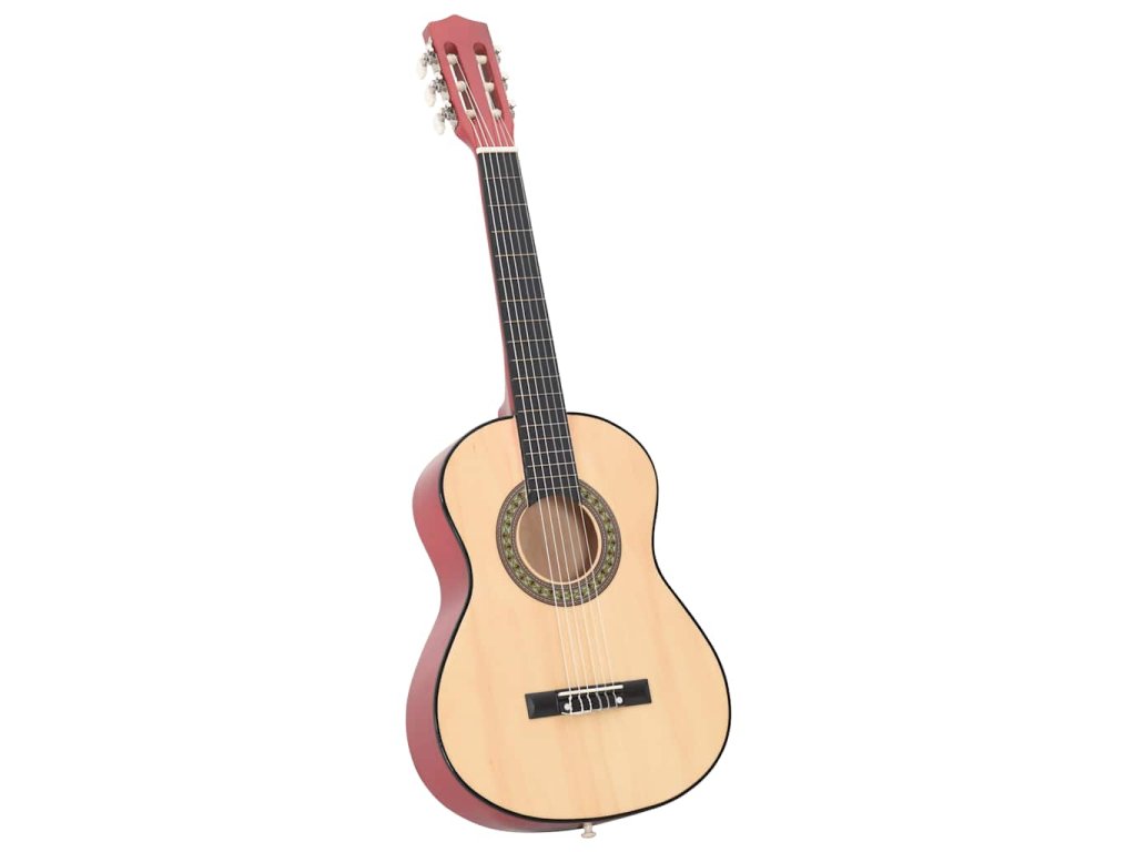 Naše klasická kytara je skvělý nástroj pro děti, začátečníky i amatéry. Set kromě kytary obsahuje také obal na kytaru, popruh, trsátka, ladicí píšťalku a sadu kytarových strun.
