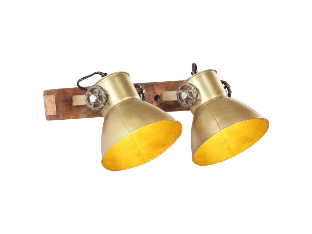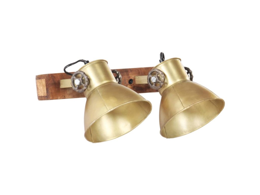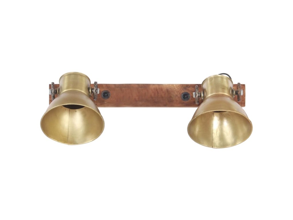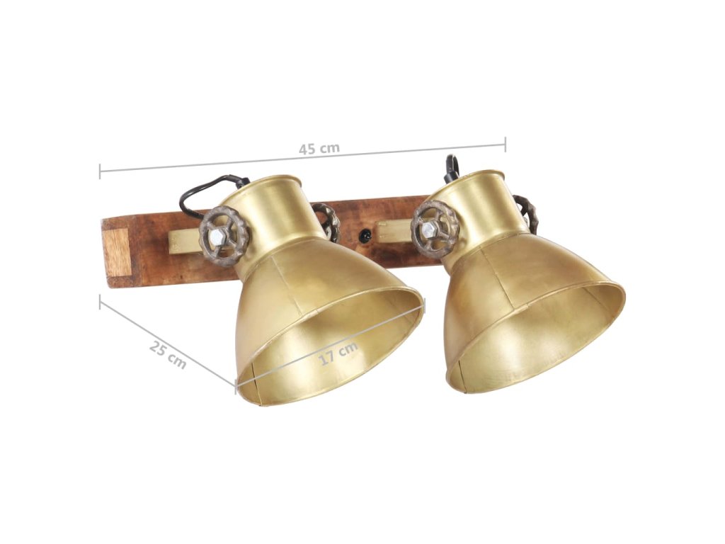 Železná stínidla s mosazným patinovaným povrchem doplňuje starovenkovský hnědý odstín masivního mangovníkového dřeva, takže skvěle zapadnou do každého venkovského či industriálního interiéru. Stropní světlo má 2 stínidla, do kterých je třeba namontovat žárovky s paticí E27 o maximálním výkonu 25 wattů. K instalaci si můžete vybírat ze žárovek E27 různých barev, abyste si doma navodili ideální atmosféru klidu a pohody. Tuto lampu lze rovněž připevnit ke stropu.
