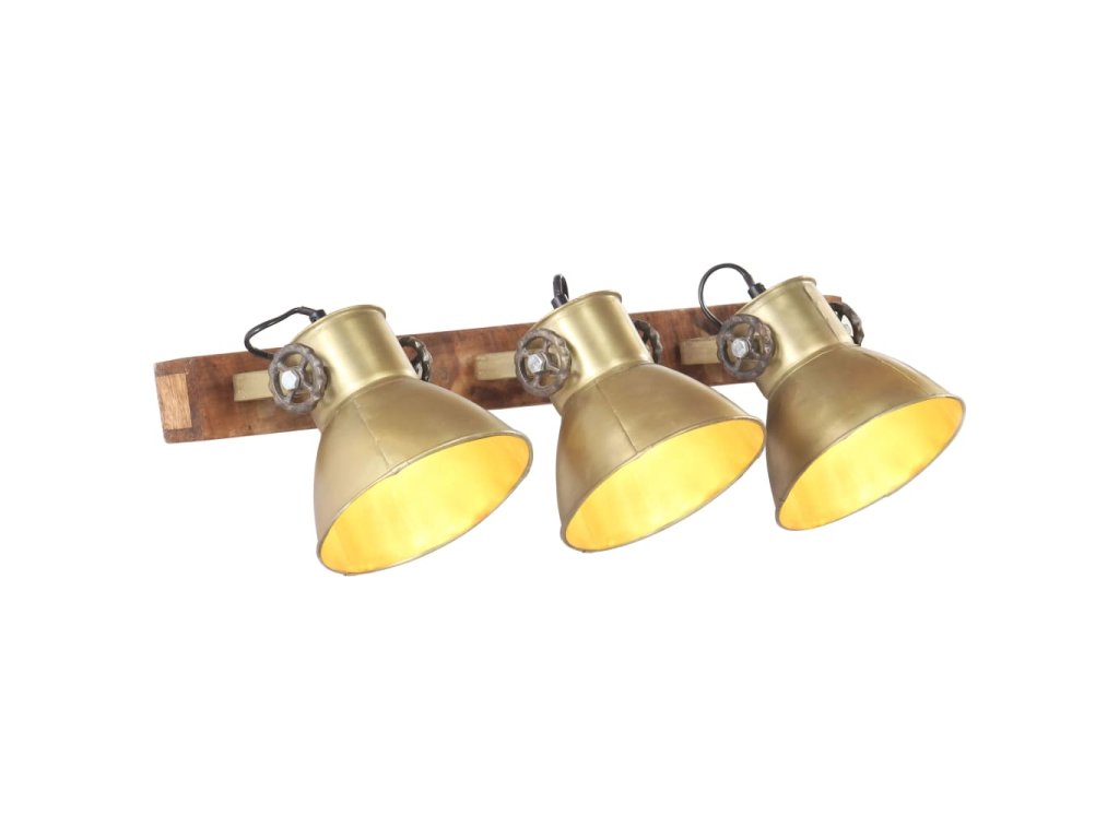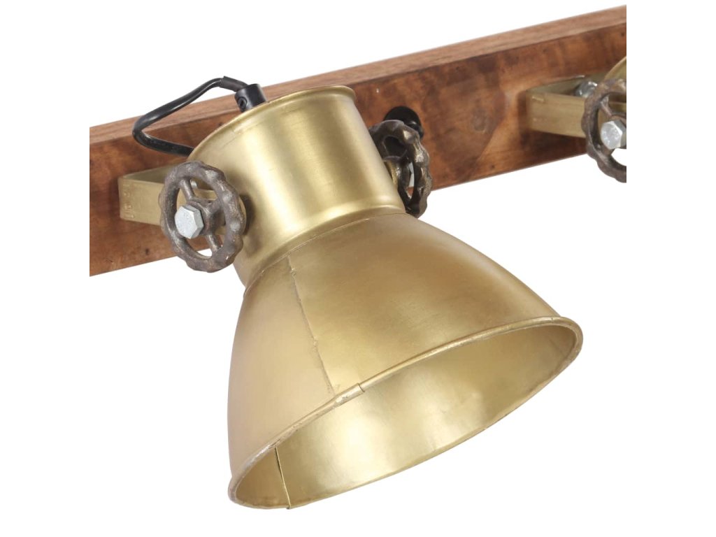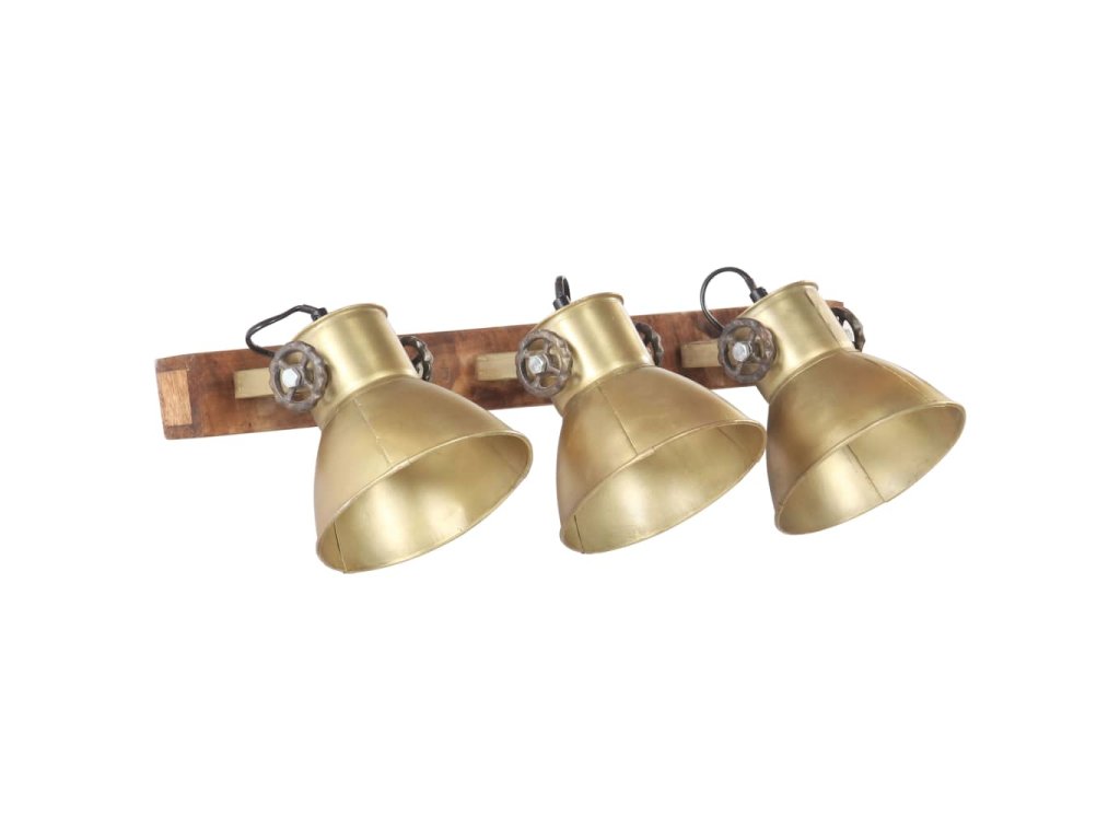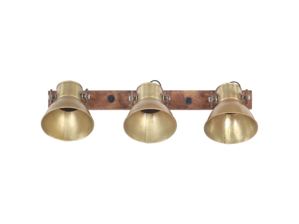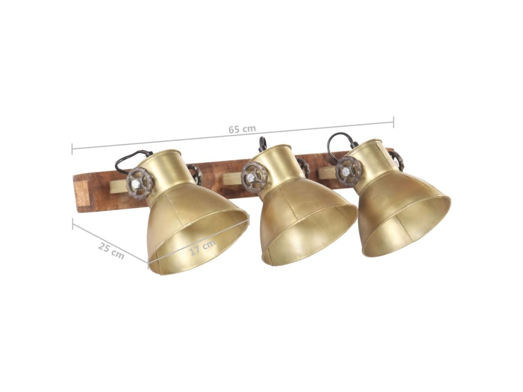 Železná stínidla s mosazným patinovaným povrchem doplňuje starovenkovský hnědý odstín masivního mangovníkového dřeva, takže skvěle zapadnou do každého venkovského či industriálního interiéru. Stropní světlo má 3 stínidla, do kterých je třeba namontovat žárovky s paticí E27 o maximálním výkonu 25 wattů. K instalaci si můžete vybírat ze žárovek E27 různých barev, abyste si doma navodili ideální atmosféru klidu a pohody. Tuto lampu lze rovněž připevnit ke stropu.