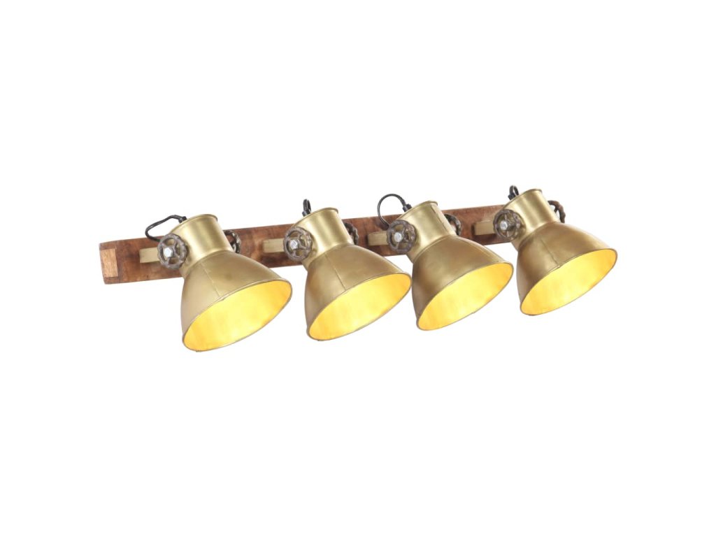 Železná stínidla s mosazným patinovaným povrchem doplňuje starovenkovský hnědý odstín masivního mangovníkového dřeva, takže skvěle zapadnou do každého venkovského či industriálního interiéru. Stropní světlo má 4 stínidla, do kterých je třeba namontovat žárovky s paticí E27 o maximálním výkonu 25 wattů. K instalaci si můžete vybírat ze žárovek E27 různých barev, abyste si doma navodili ideální atmosféru klidu a pohody.