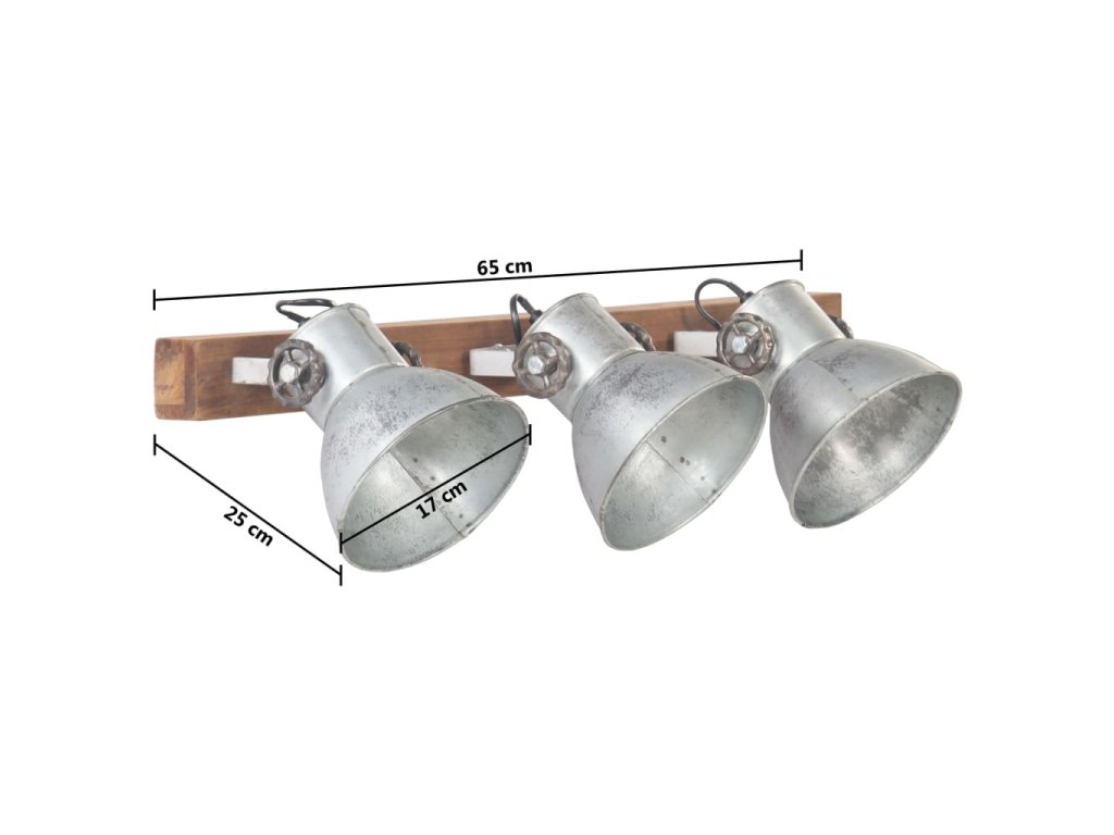 Železná stínidla s povrchem vintage lota doplňuje starovenkovský hnědý odstín masivního mangovníkového dřeva, takže skvěle zapadnou do každého venkovského či industriálního interiéru. Stropní světlo má 3 stínidla, do kterých je třeba namontovat žárovky s paticí E27 o maximálním výkonu 25 wattů. K instalaci si můžete vybírat ze žárovek E27 různých barev, abyste si doma navodili ideální atmosféru klidu a pohody. Tuto lampu lze rovněž připevnit ke stropu.