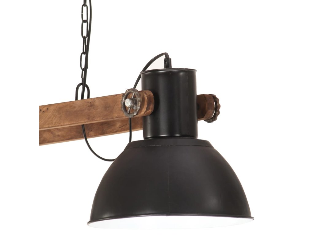 Železná stínidla s černým povrchem doplňuje starovenkovský hnědý odstín masivního mangovníkového dřeva, takže se skvěle hodí do každého venkovského či industriálního interiéru. Stropní světlo má 2 stínidla, do kterých je třeba namontovat žárovky s paticí E27 o maximálním výkonu 25 wattů. K instalaci si můžete vybírat ze žárovek E27 různých barev, abyste si doma navodili ideální atmosféru klidu a pohody.