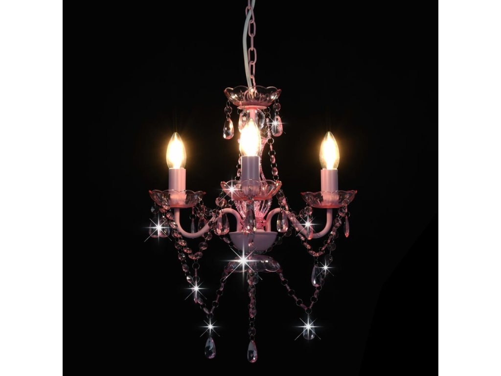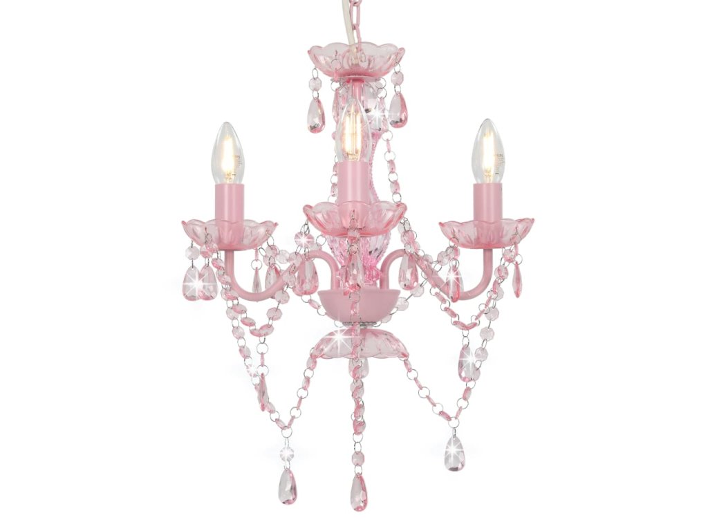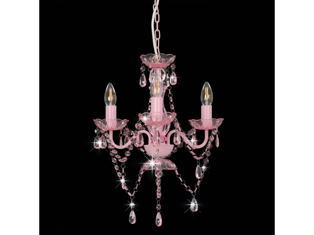Lustr s korálky růžový kulatý 3 x E14 281598