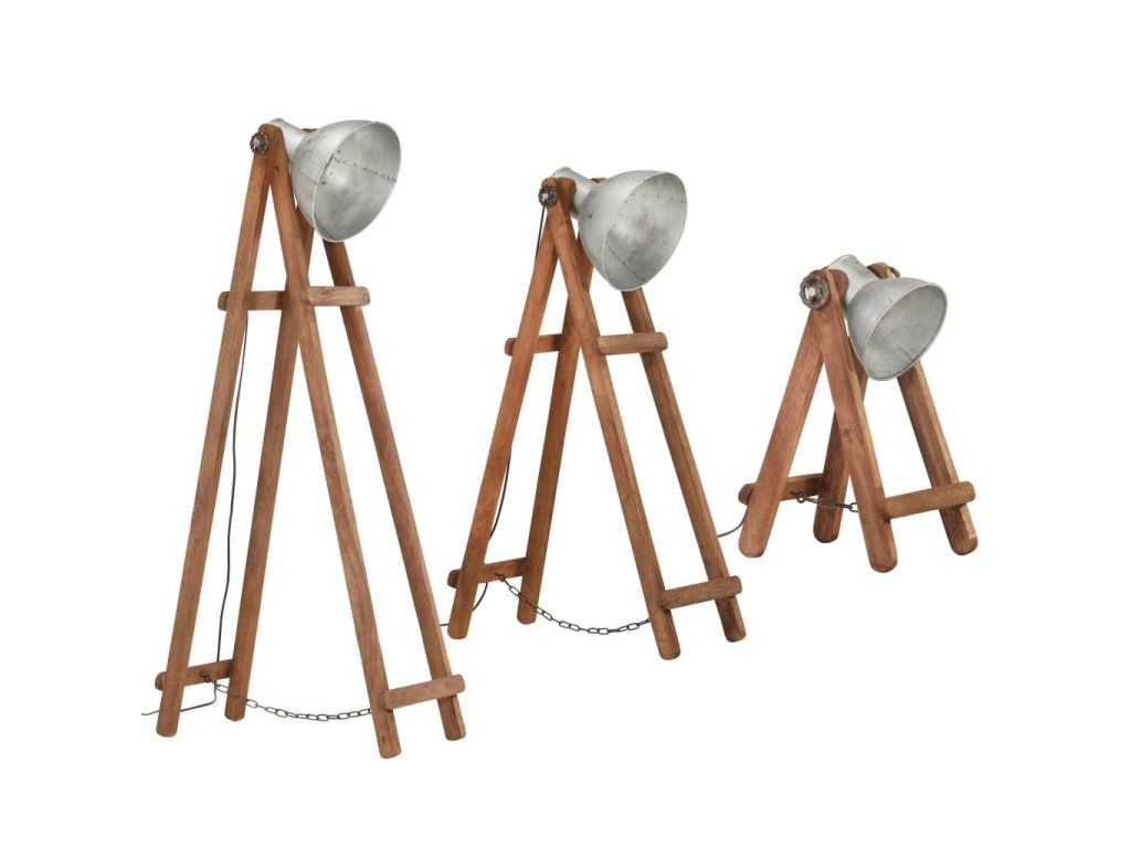 Tyto lampy s vintage designem v interiéru zaujmou na první pohled. Železné stínidlo se stříbrnou povrchovou úpravou šíří teplé a příjemné světlo. Rám z masivního mangovníkového dřeva s povrchovou úpravou ve starovenkovské hnědé barvě se perfektně hodí do rustikálního nebo industriálního interiéru. Lampy v této sadě mají 3 odlišné velikosti pro různé specifické potřeby osvětlení. Ve stínidle je objímka E27 pro žárovku o maximálním výkonu 25 W. Můžete si vybrat a nainstalovat žárovku E27 jakékoli barvy, abyste vytvořili atmosféru relaxace a odpočinku podle vašich představ. Lampa se snadno zapíná a vypíná dodaným podlahovým spínačem.