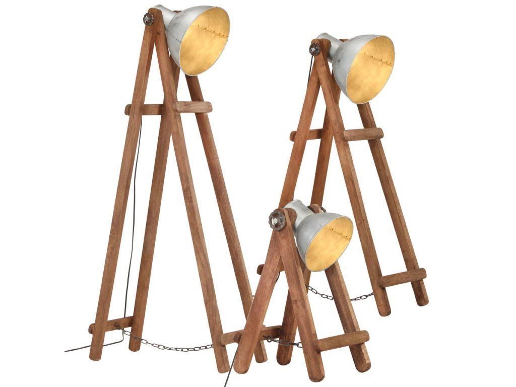 Stojací lampy 3 ks stříbrné E27 masivní mangovníkové dřevo 320591