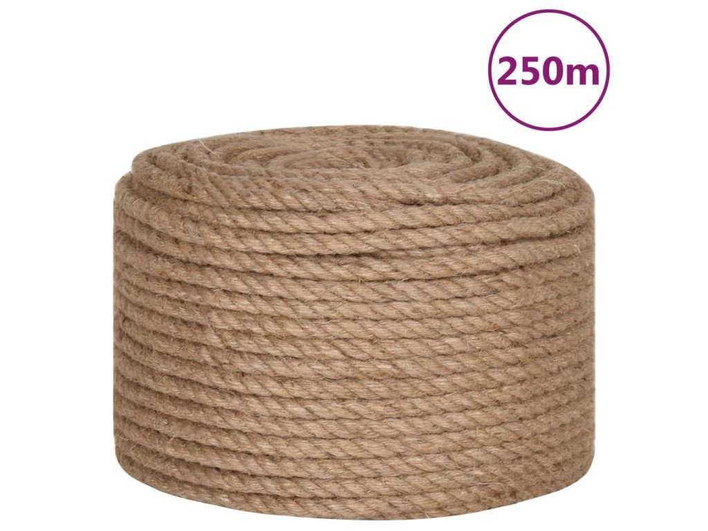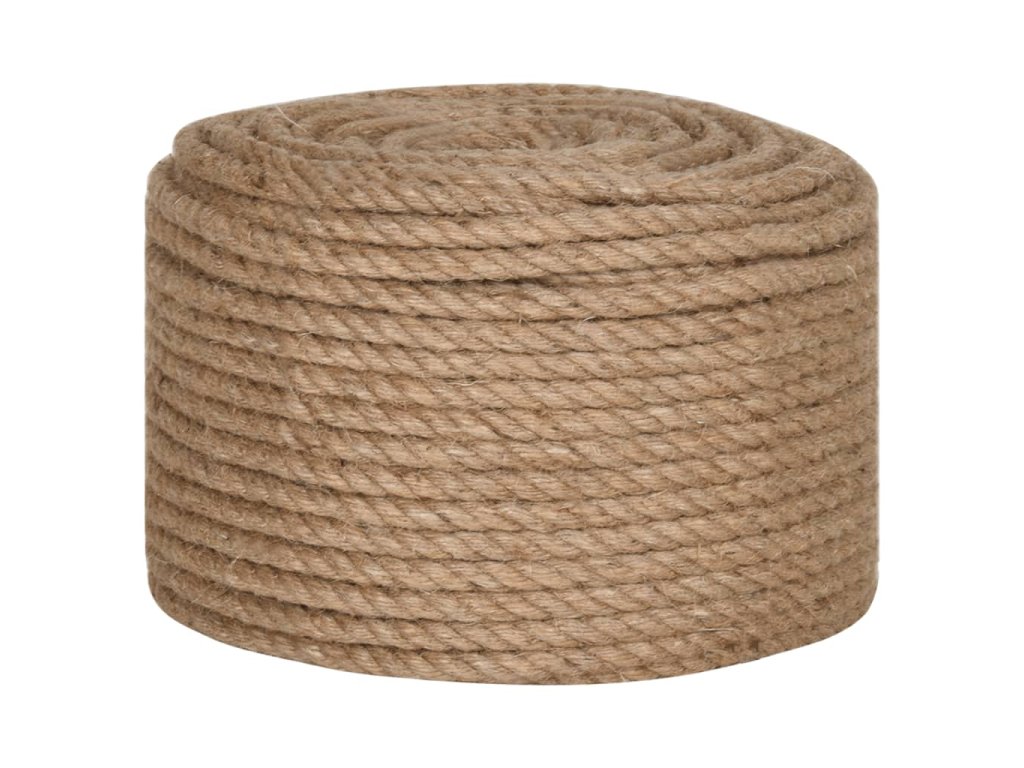 Toto lano je vyrobeno ze 100% přírodní juty. Je odolné vůči potrhání a otěru a hodně toho vydrží. Jutové lano dobře vypadá a je příjemné na dotek.