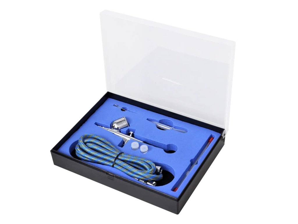 Sada na airbrush se dodává v plastovém kufříku pro snazší přepravu a uskladnění.