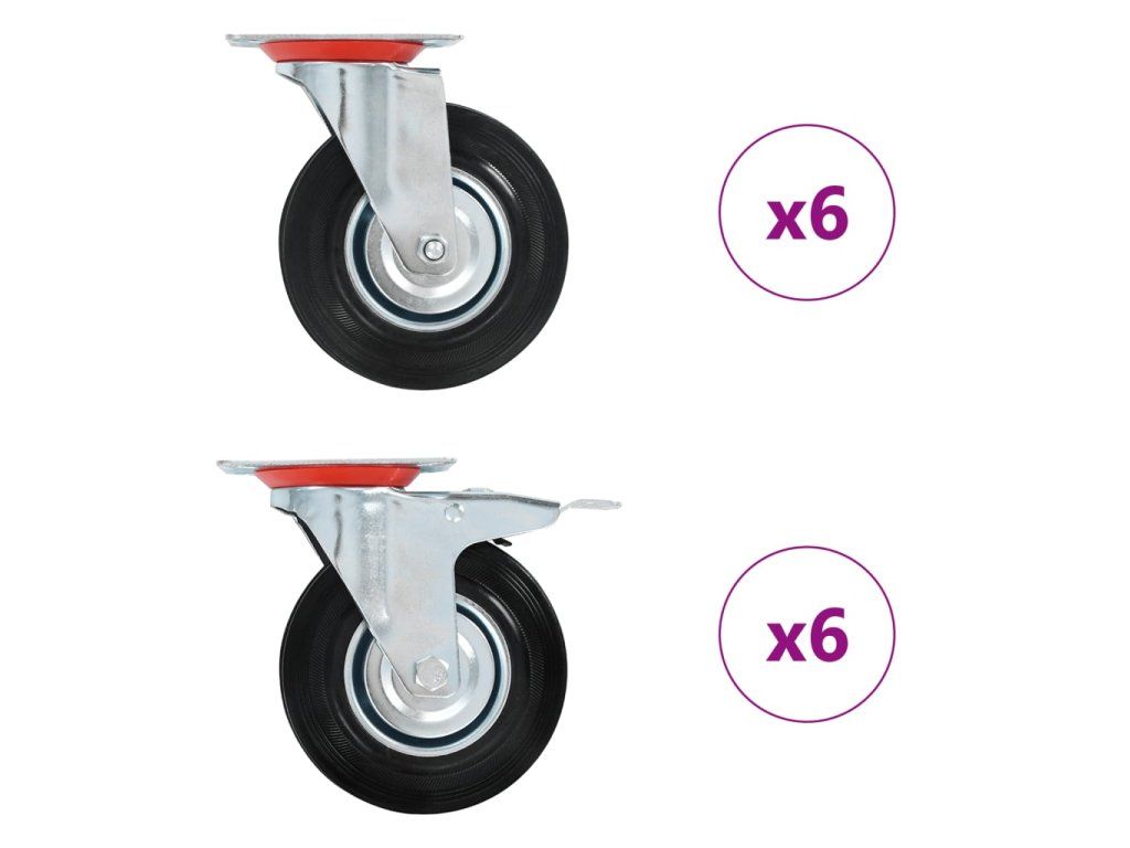 - Balení obsahuje 6 otočných koleček a 6 otočných koleček s brzdou