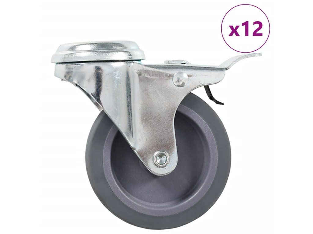 Balení obsahuje 12 otočných koleček s otvorem pro šroub. Polovina koleček je vybavená brzdou.