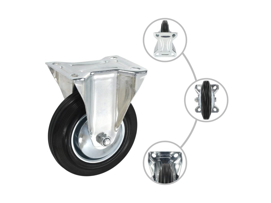 Kolečka jsou vyrobená z gumy, která je známá pro svou schopnost pohlcovat nárazy a vibrace. Ať už tedy kolečka namontujete na cokoliv, budete to moci přesouvat hladce a v tichosti. Jejich hladký povrch navíc ochrání vaši podlahu před poškrábáním. Zinkem potažený ocelový rám je odolný proti rzi, a tudíž kolečkům dodává na odolnosti a prodlužuje jejich životnost. Polovina těchto otočných koleček je vybavená dvojitou brzdou pro flexibilnější ovládání. Každé kolečko má maximální nosnost až 150 kg.