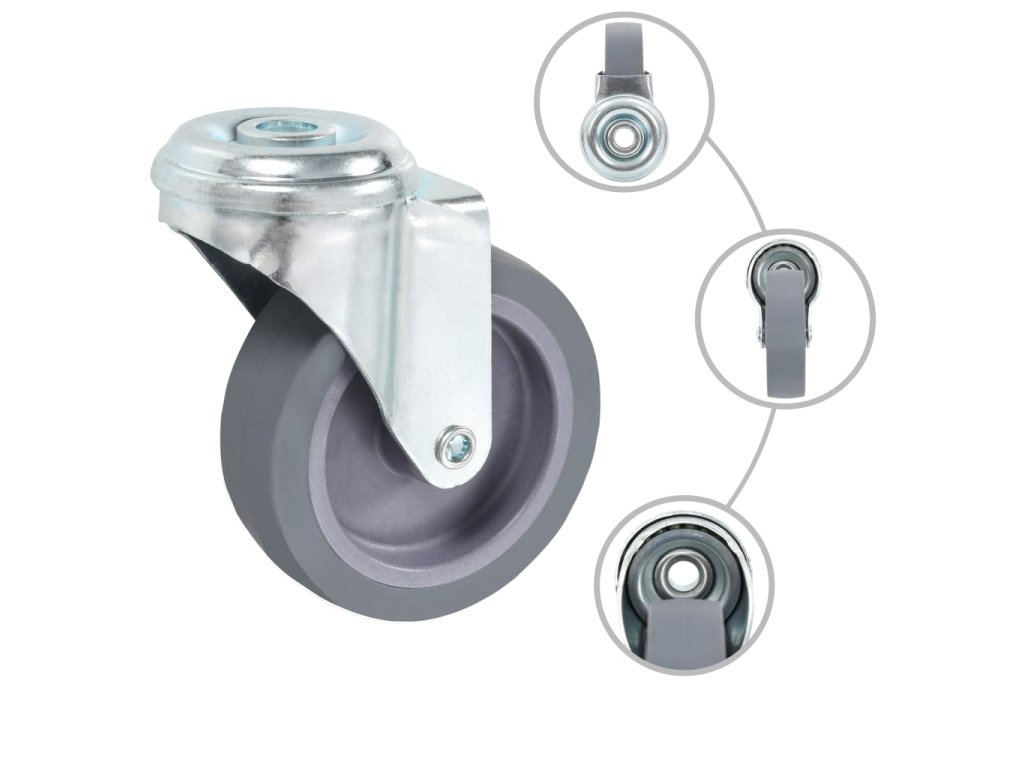 Kolečka jsou vyrobena z TPR (termoplastické gumy), která je známá pro svou schopnost pohlcovat nárazy a vibrace. Ať už tedy kolečka namontujete na cokoliv, budete to moci přesouvat hladce a v tichosti. Jejich hladký povrch navíc ochrání vaši podlahu před poškrábáním. Zinkem potažený ocelový rám je odolný proti rzi, dodává kolečkům na odolnosti a prodlužuje jejich životnost. Každé kolečko má maximální nosnost až 45 kg.