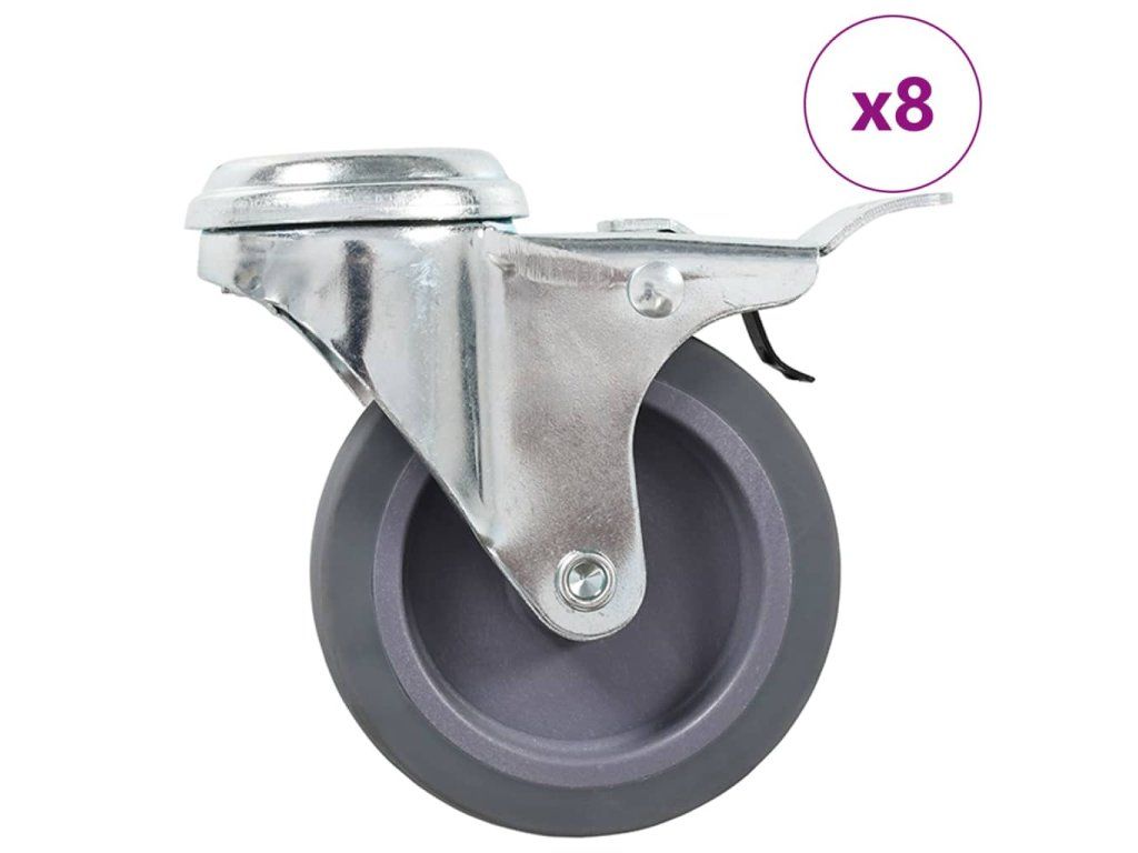 - Balení obsahuje 8 otočných koleček s otvorem pro šroub. Polovina koleček je vybavená brzdou.