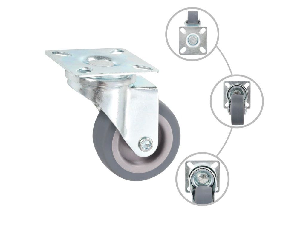 Kolečka jsou vyrobena z TPR (termoplastické gumy), která je známá pro svou schopnost pohlcovat nárazy a vibrace. Ať už tedy kolečka namontujete na cokoliv, budete to moci přesouvat hladce a v tichosti. Jejich hladký povrch navíc ochrání vaši podlahu před poškrábáním. Zinkem potažený ocelový rám je odolný proti rzi, dodává kolečkům na odolnosti a prodlužuje jejich životnost. Každé kolečko má maximální nosnost až 35 kg.