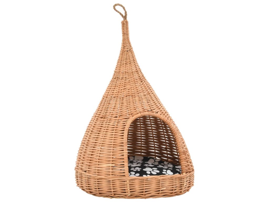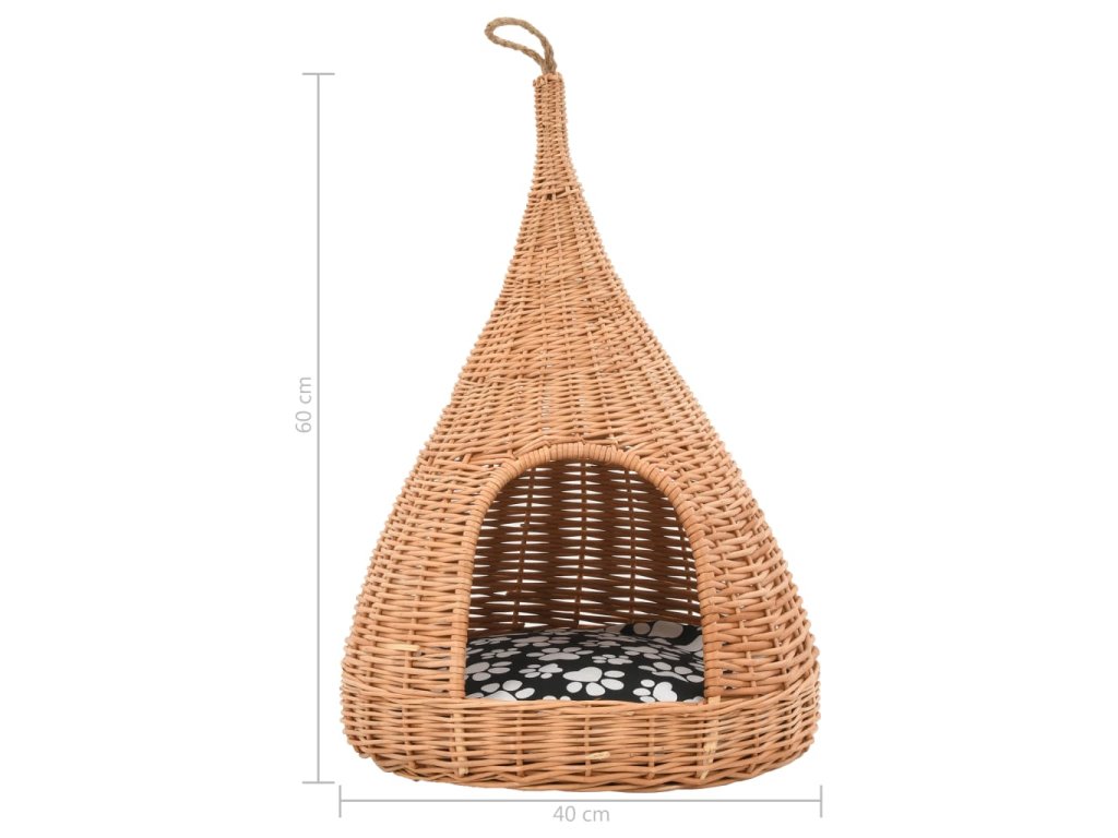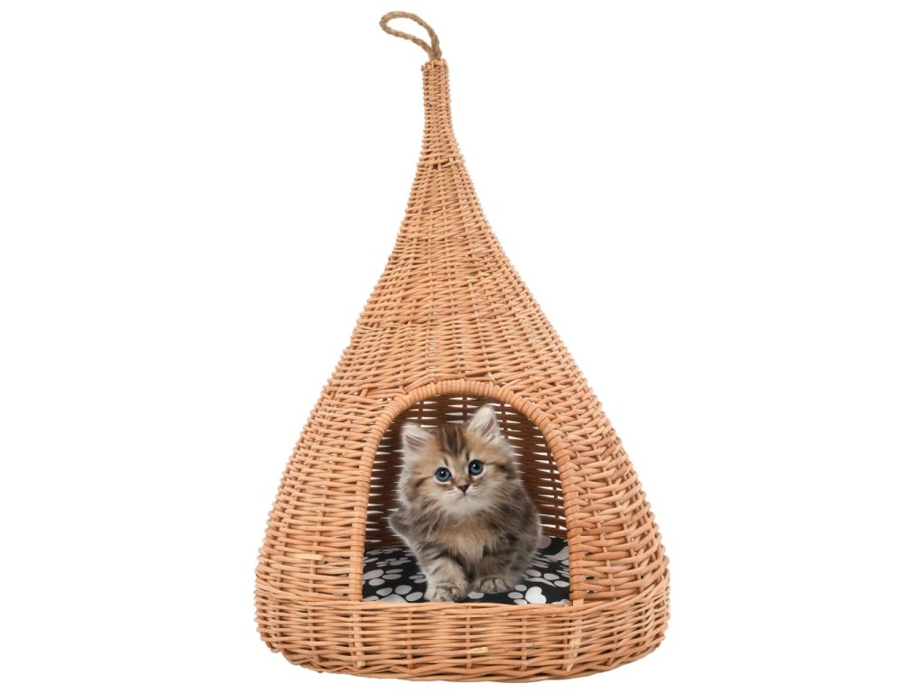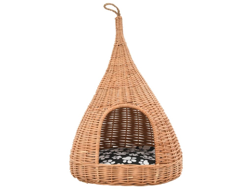 Domeček pro kočky s poduškou 40 x 60 cm přírodní vrba týpí 170777