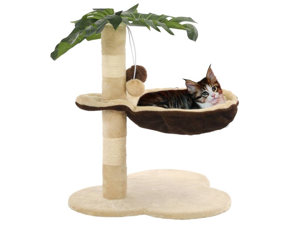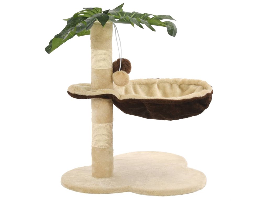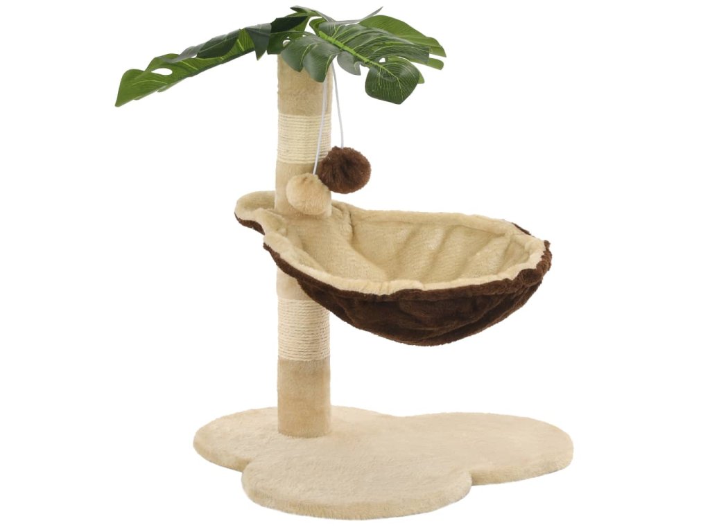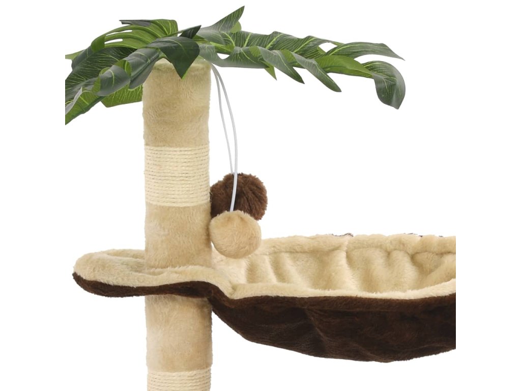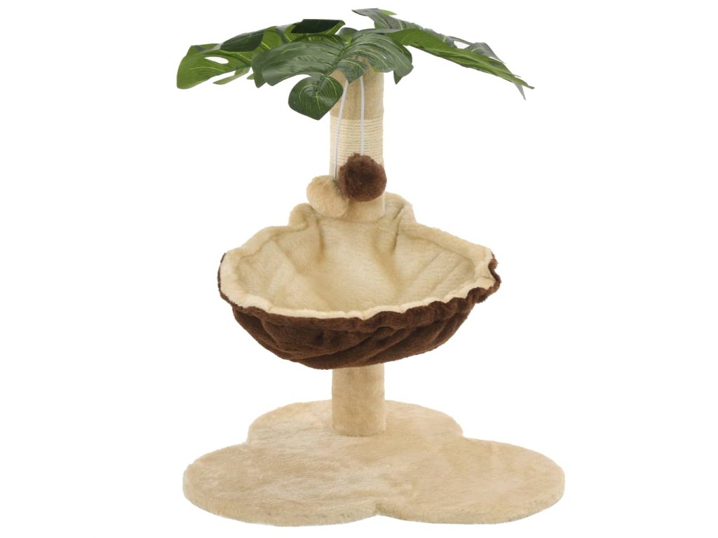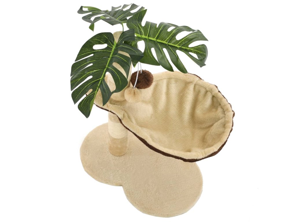 Škrabací sloupek s plyšovým potahem je omotaný sisalovým provazem, což je pro vaše kočkovité kamarády velice pohodlné a praktické pro ostření jejich drápků. Náš kočičí strom disponuje malou útulnou postýlkou, kde si vaše kočka může odpočinout nebo se prospat. Je navíc vybaven 2 závěsnými kuličkami, takže se váš malý kamarád nebude nikdy nudit. Tři odnímatelné listy dodávají kočičímu stromu tropickou atmosféru. Základna tohoto škrabadla pro kočky je pevná a stabilní.