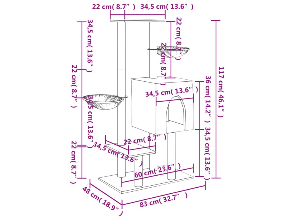 - Všestranná věž pro kočky: Víceúrovňový nábytek pro kočky je navržen s domečkem, 2 košíky a plošinami, které poskytují kočkám ideální místo pro šplhání, sezení, škrábání, schovávání se a také k odpočinku.