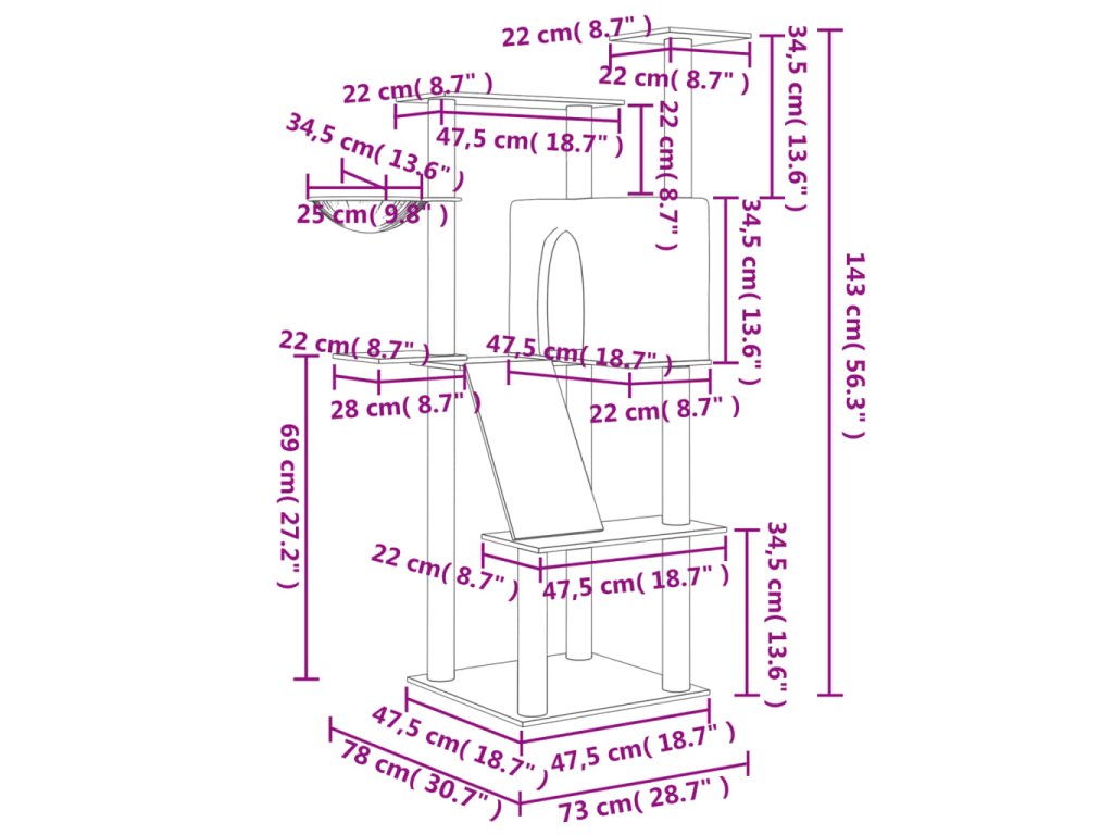 - Všestranná věž pro kočky: Víceúrovňový nábytek pro kočky je navržen s domečkem, košem, žebříkem a plošinami, které poskytují kočkám ideální místo pro šplhání, sezení, škrábání, schovávání se a také k odpočinku.