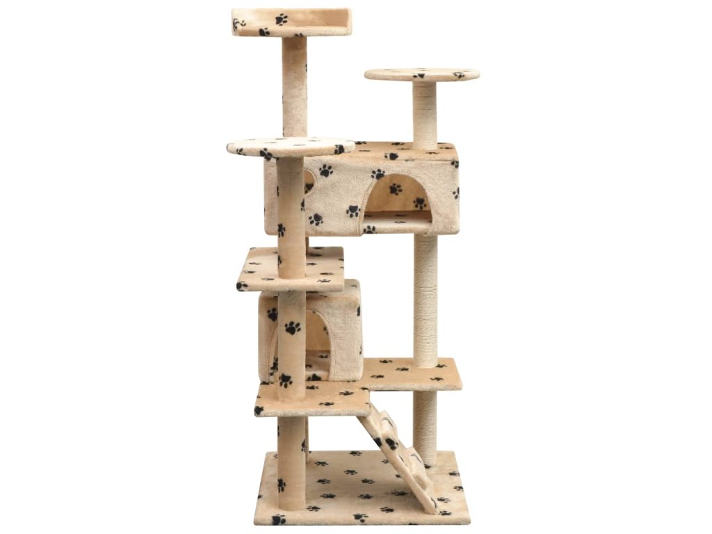 Škrabadlo pro kočky sisalové sloupky 125cm béžová potisk tlapek 170478