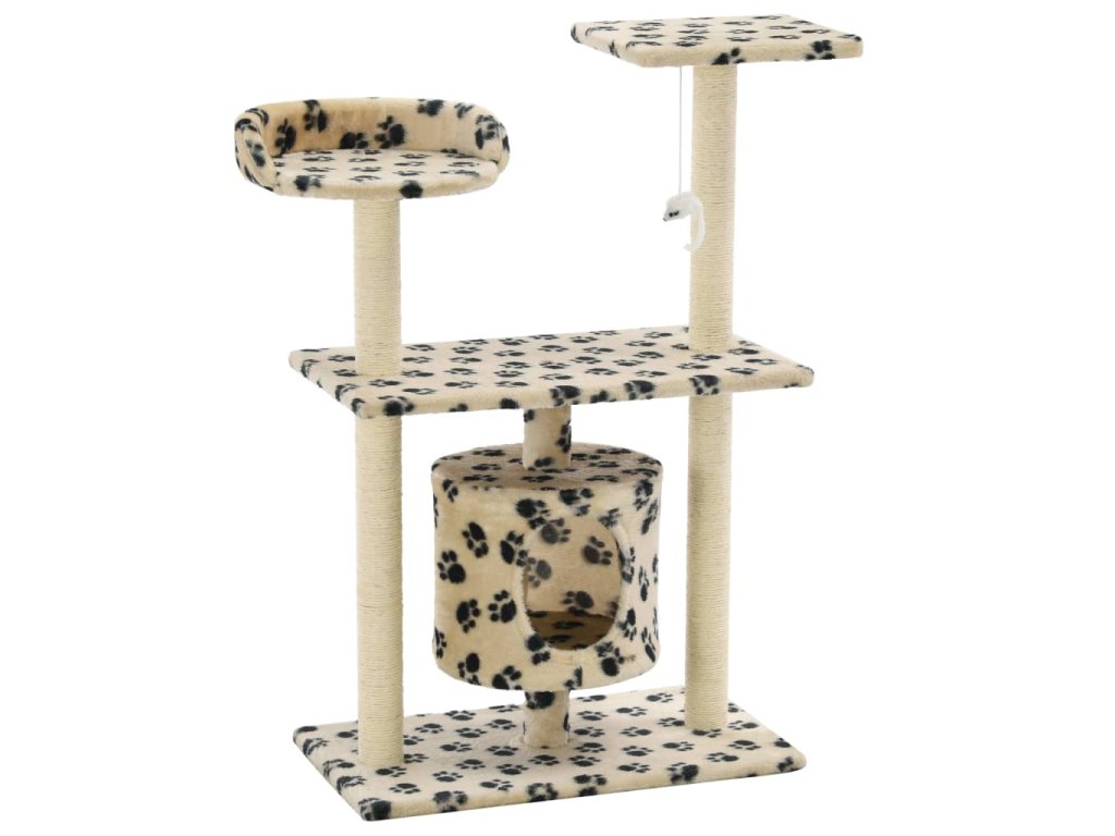 Škrabadlo pro kočky sisalové sloupky 95 cm béžové potisk tlapek 170515