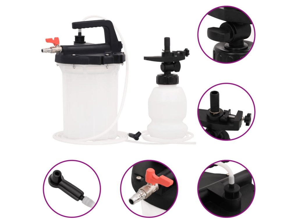 - Snadné použití: Tento odvzdušňovač brzdové kapaliny je poháněn stlačeným vzduchem a rychle nasává použitý olej, což umožňuje stabilní odsávání a kvalitní sběr staré kapaliny bez stříkání.