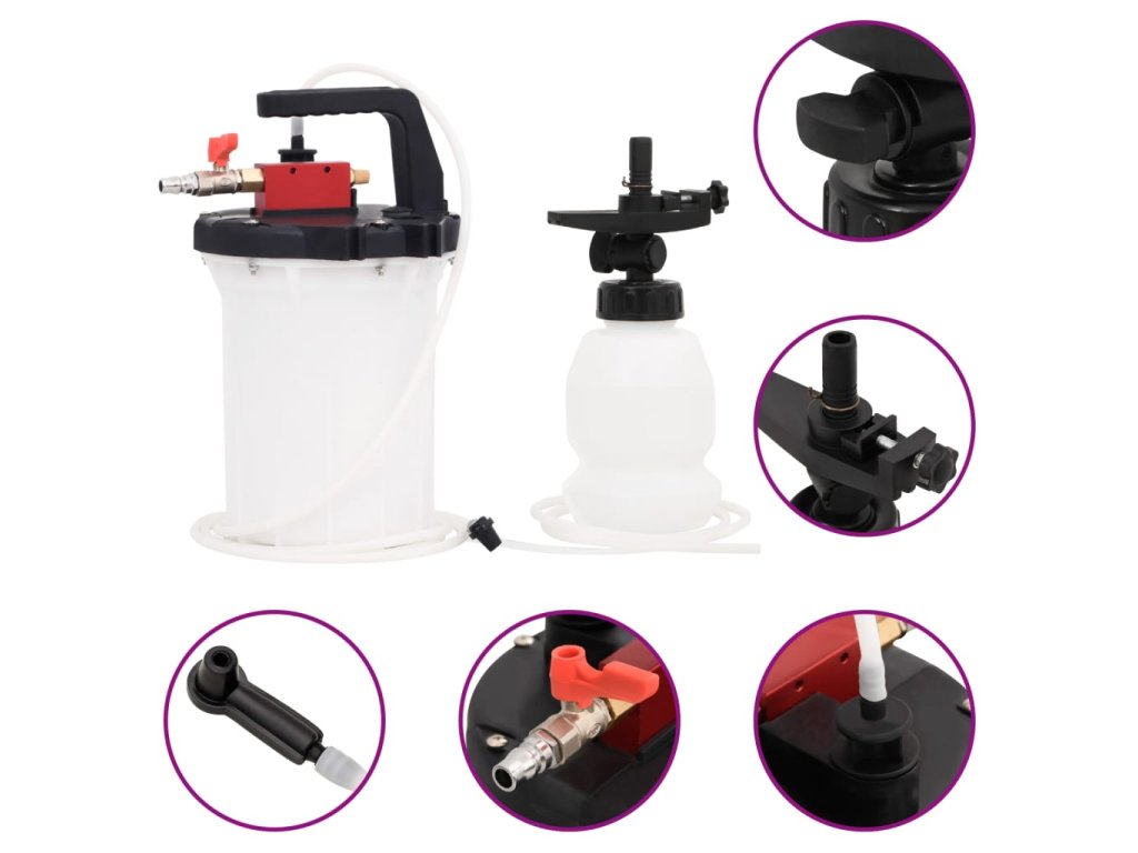 - Snadné použití: Tento odvzdušňovač brzdové kapaliny je poháněn stlačeným vzduchem a rychle nasává použitý olej, což umožňuje stabilní odsávání a kvalitní sběr staré kapaliny bez stříkání.