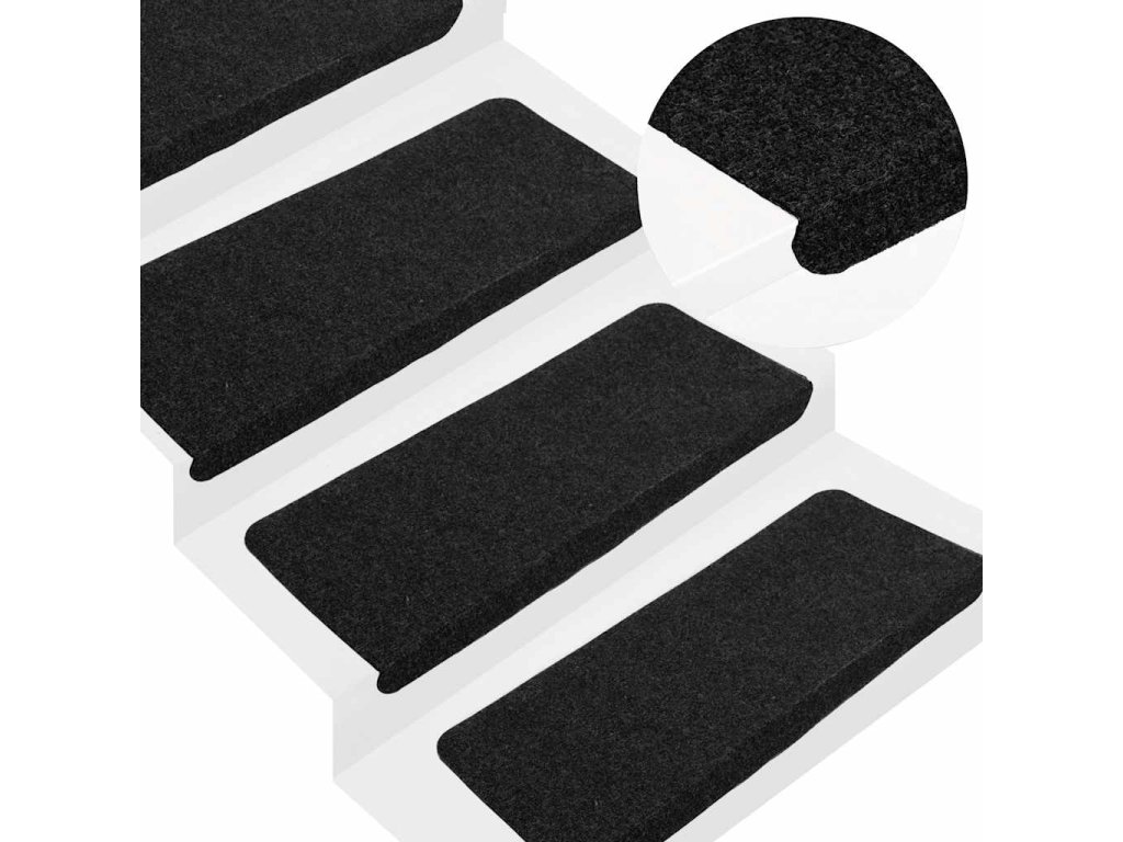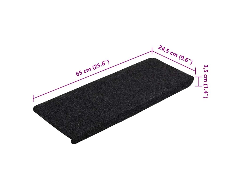 Samolepicí nášlapy na schody 15 ks 65x24,5x3,5 cm černé 343478