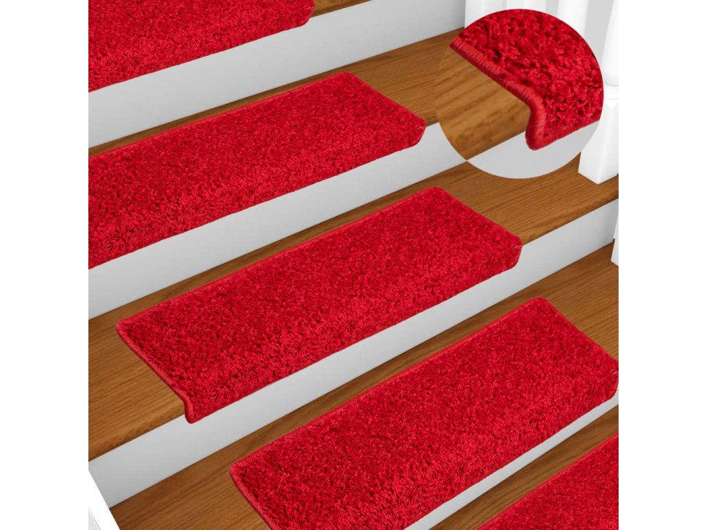 Schodové rohože 10 ks 65 x 21 x 4 cm červené s obdélníkovým okrajem 149829