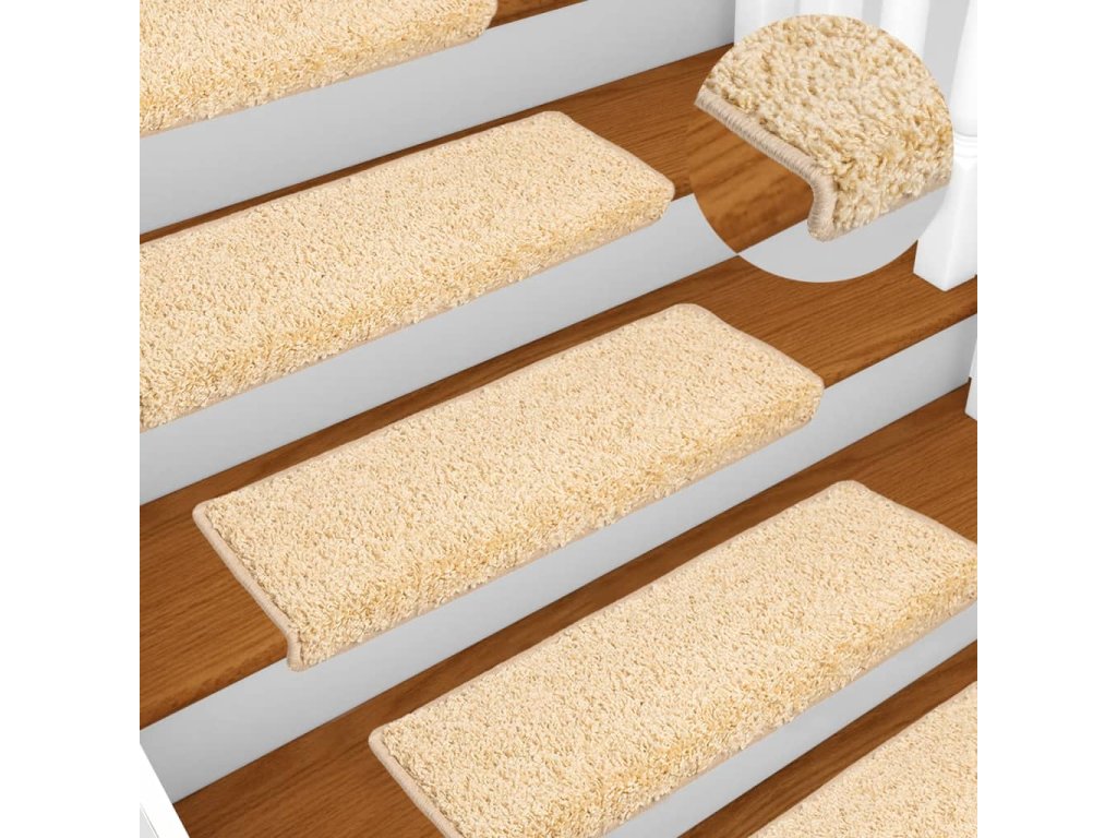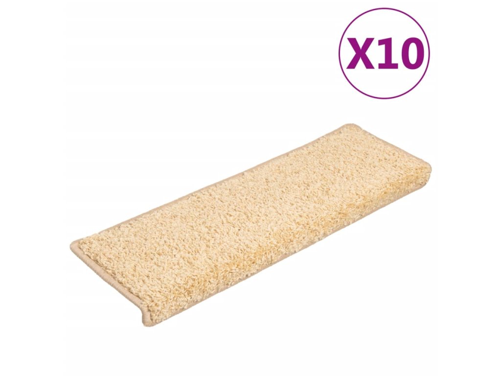 Schodové rohože 10 ks 65 x 21 x 4 cm krémové s obdélníkovým okrajem 149823