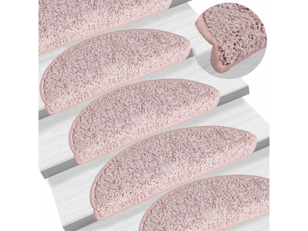 Schodové rohože 15 ks 56 x 17 x 3 cm světle růžové, půlkulaté 322376