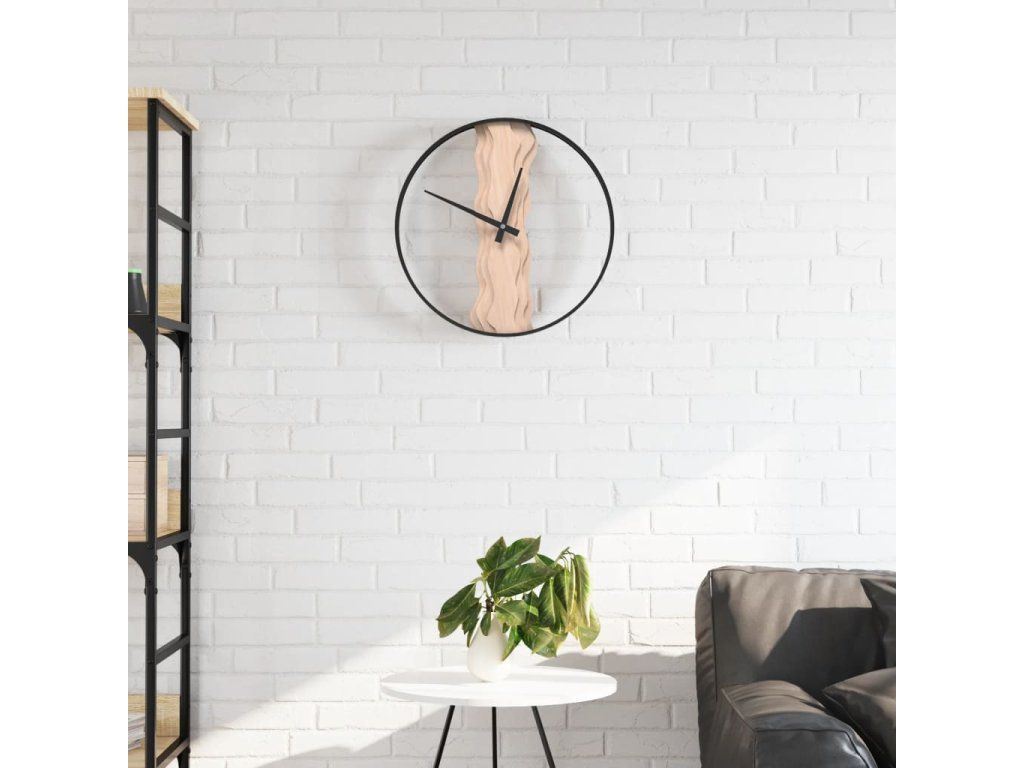 Nástěnné hodiny hnědé Ø 35 cm železo a dubové dřevo 4008397
