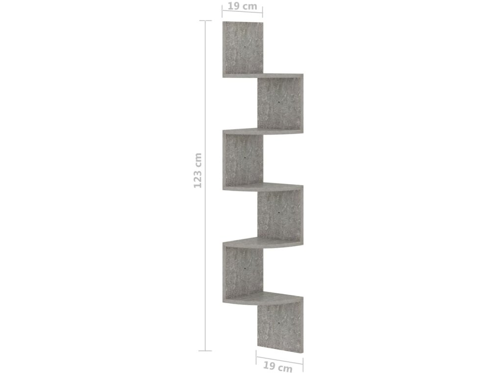 Nástěnná rohová police betonově šedá 19 x 19 x 123 cm kompozit 326835