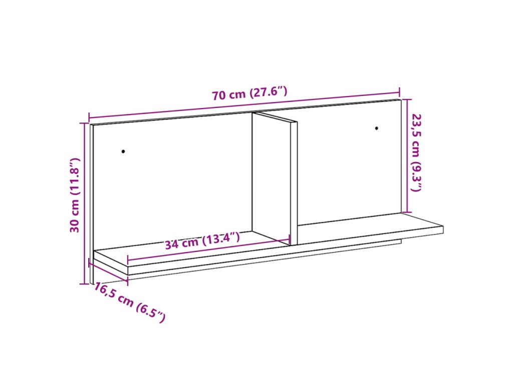 - Rozměry: 70 x 16,5 x 30 cm (Š x H x V)