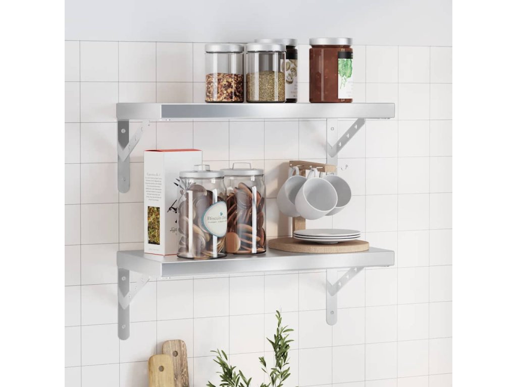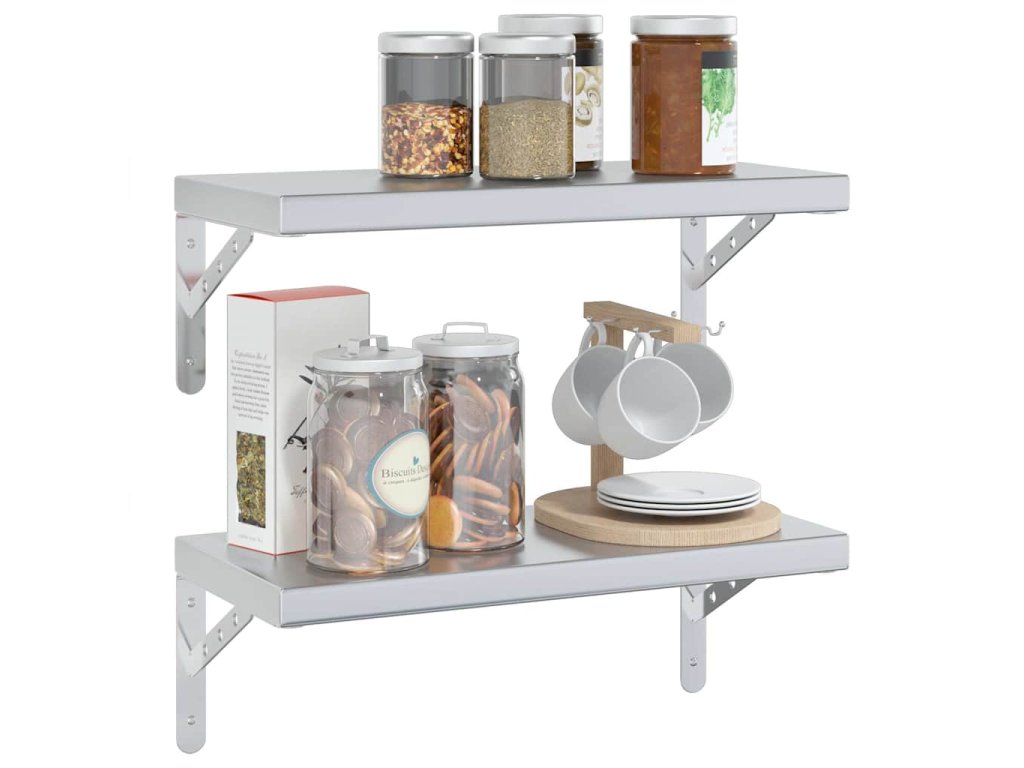 Nástěnné police 2 ks 50 x 23,5 cm stříbrné nerezová ocel 3214510