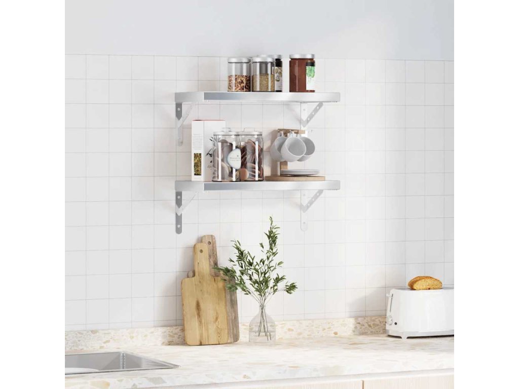 Nástěnné police 2 ks 50 x 23,5 x 3 cm stříbrné nerezová ocel 30286