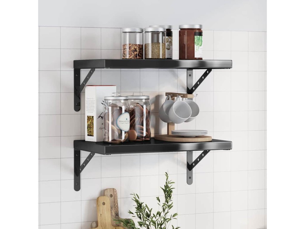 Nástěnné police 2 ks 50 x 30 cm černé nerezová ocel 3214518