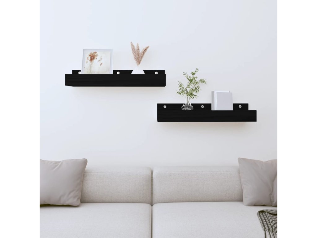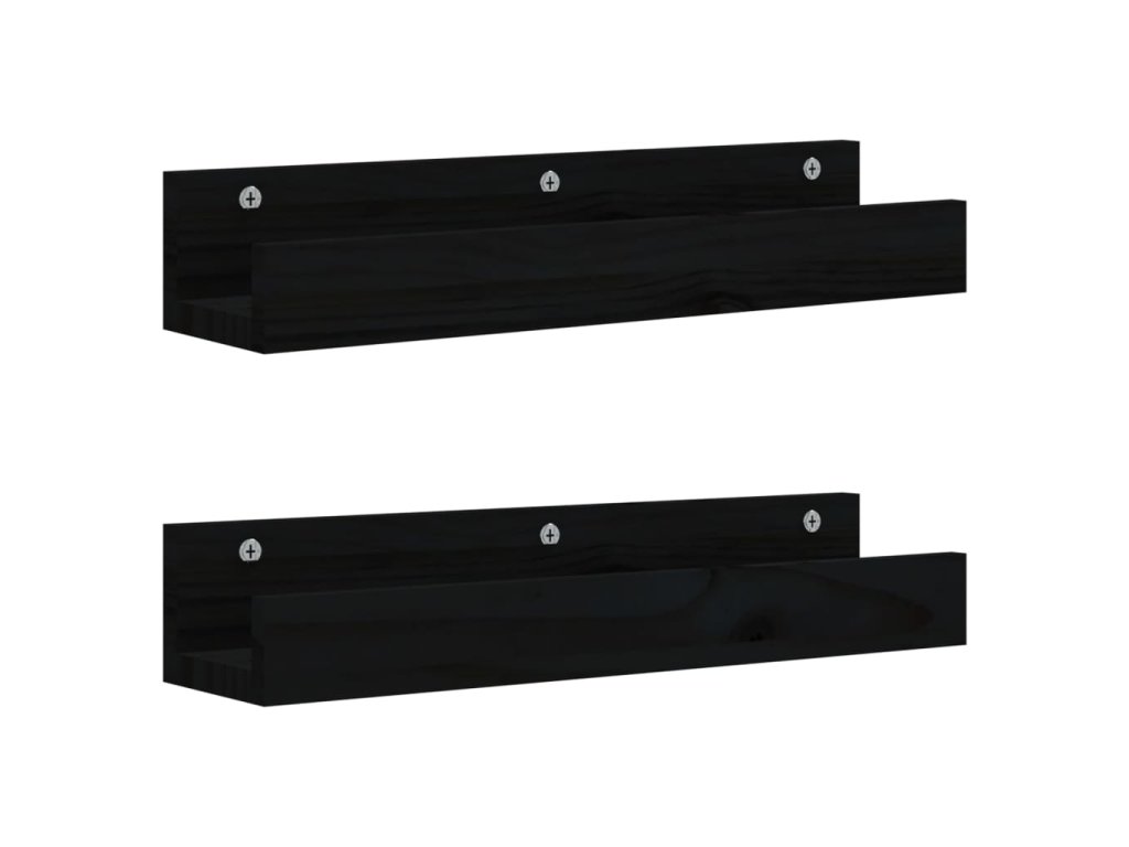 Nástěnné police 2 ks černé 50 x 12 x 9 cm masivní borové dřevo 823588