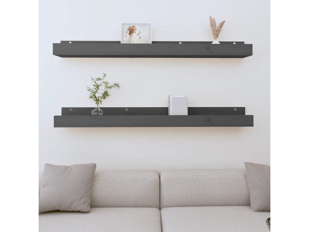 Nástěnné police 2 ks šedé 110 x 12 x 9 cm masivní borové dřevo 823596