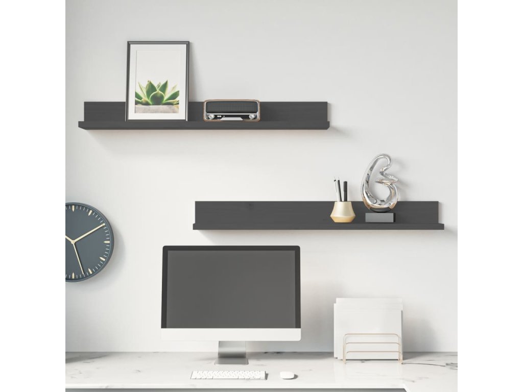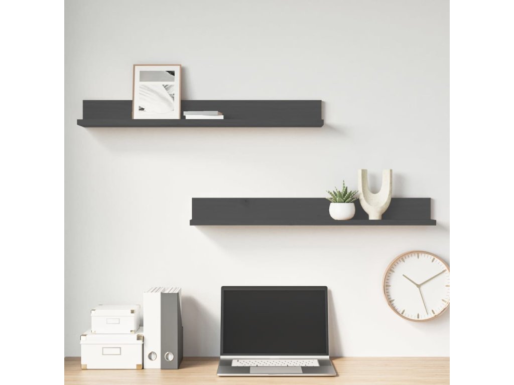 Nástěnné police 2 ks šedé 80 x 11 x 9 cm masivní borové dřevo 823606