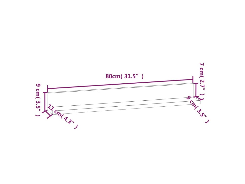 - Rozměry: 80 x 11 x 9 cm (Š x H x V)